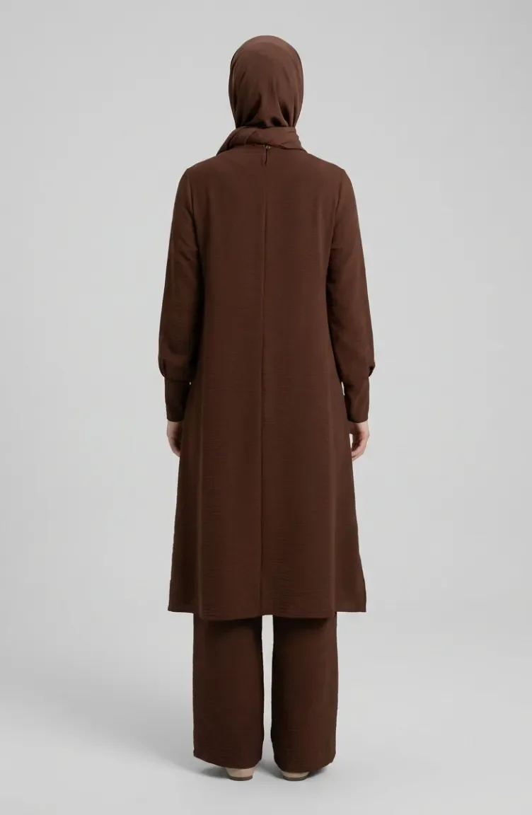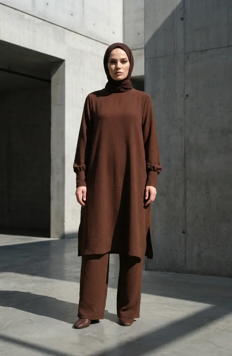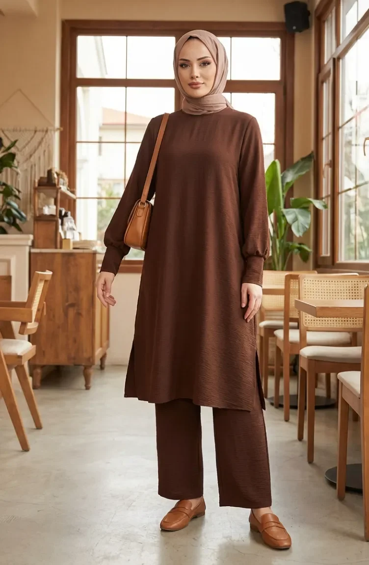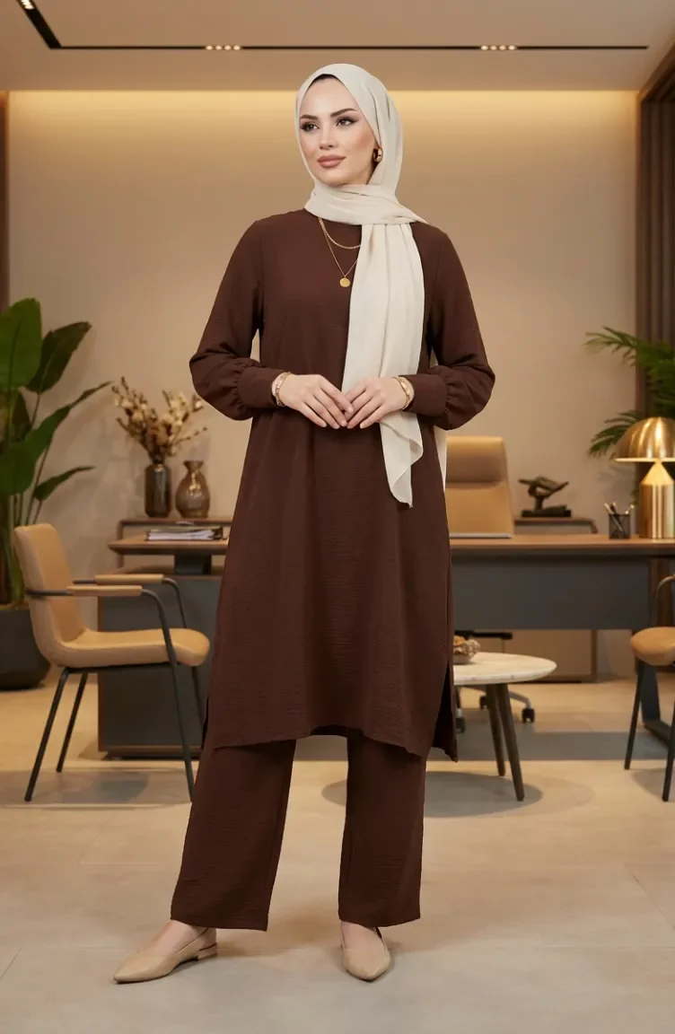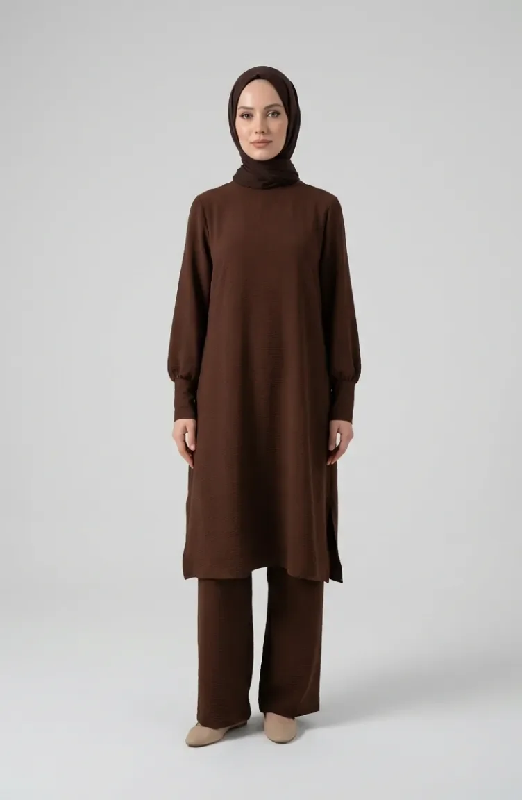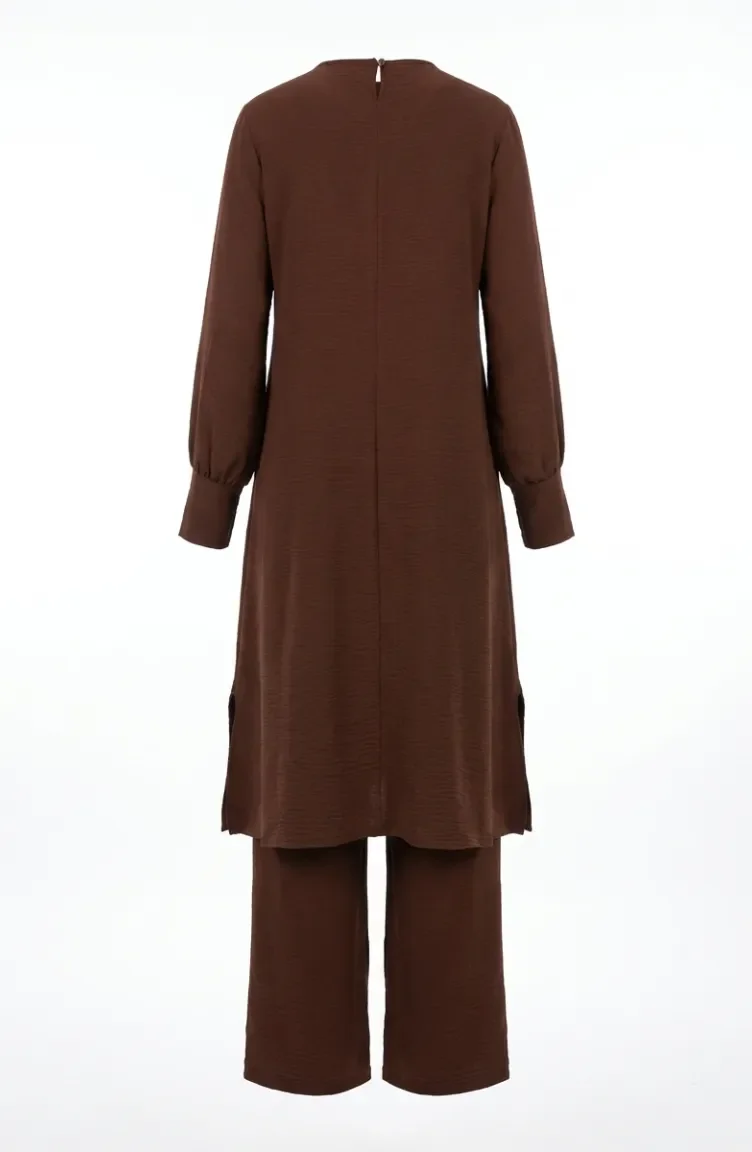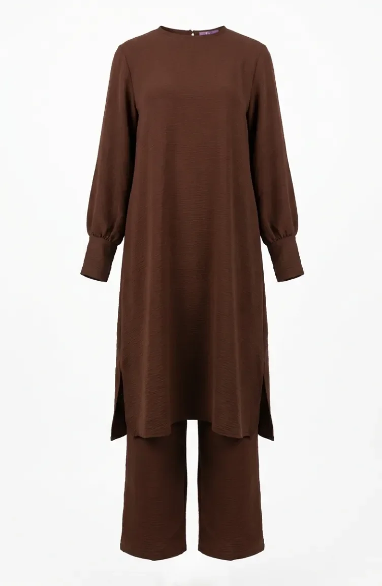 طقم من قطعتين من قماش أيروبين، يتكون من تونيك وبنطال، رقم الموديل 4144-02، لون بني 4144-02