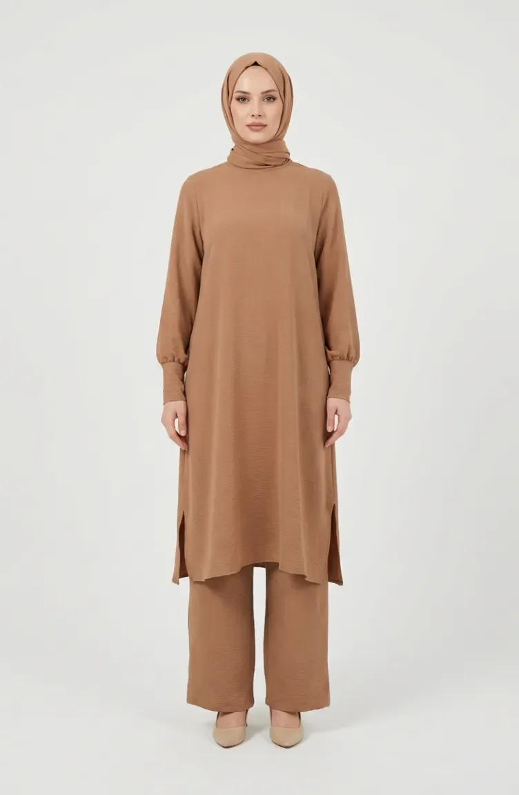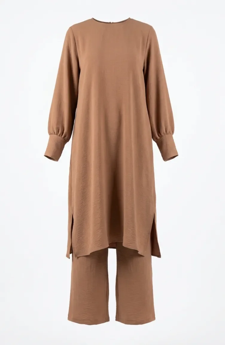 طقم من قطعتين من قماش إيروبين، يتكون من تونيك وبنطال، رقم الموديل 4144-03، لون جملي 4144-03