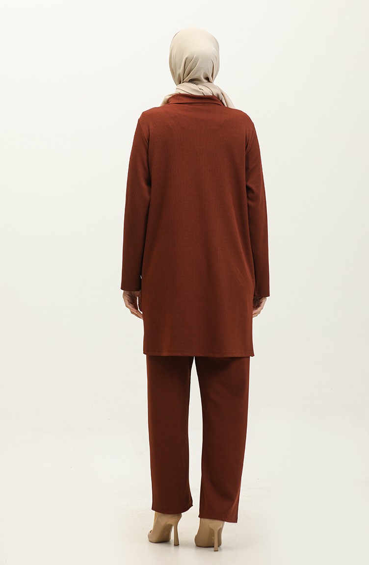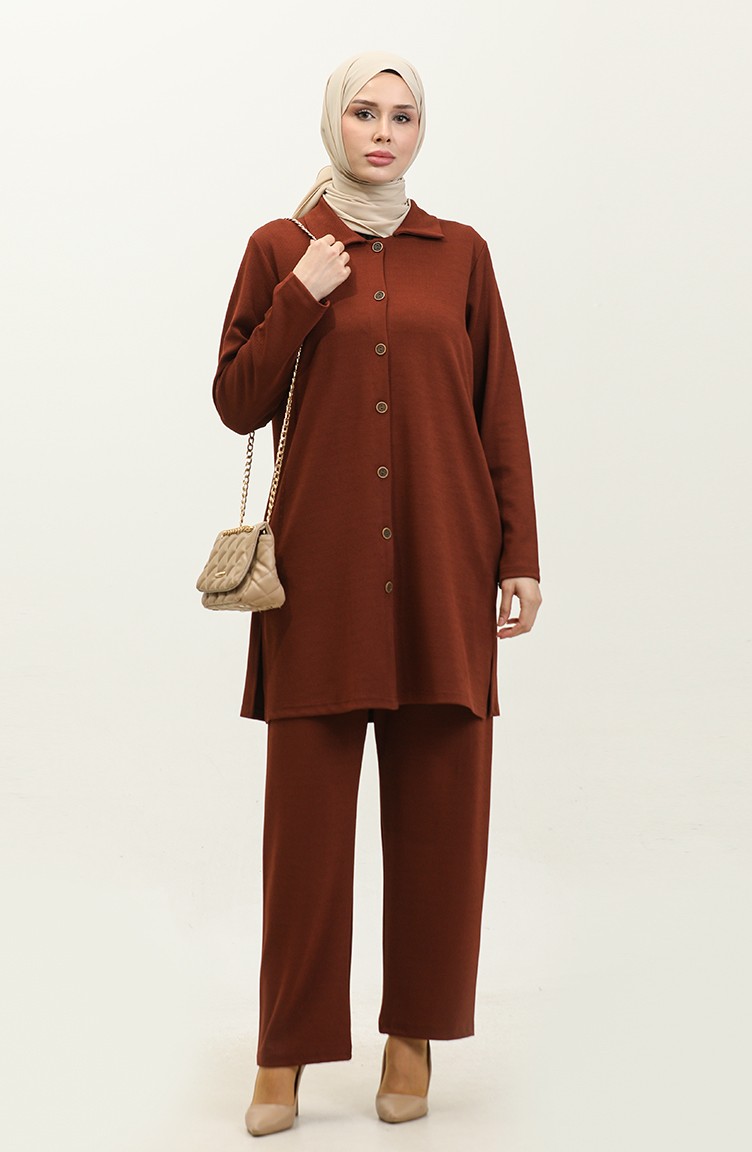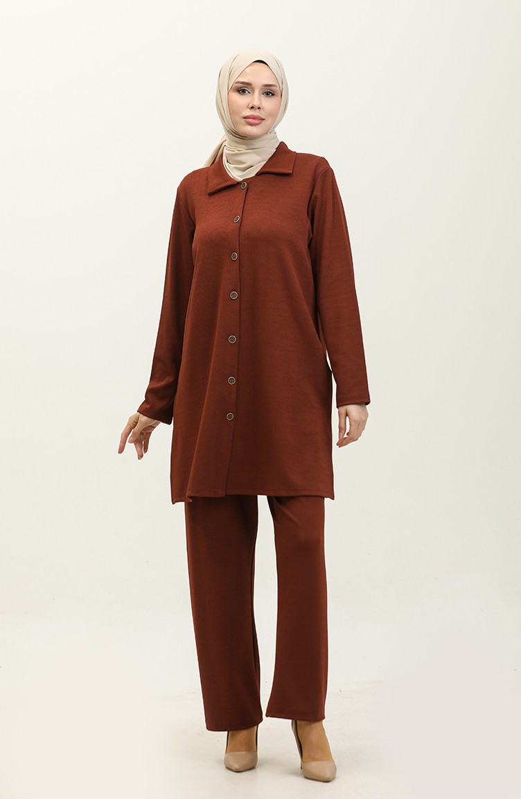 بدلة آسيوية من قطعتين، بنطال، تونيك، 2611-05، لون بني 2611-05