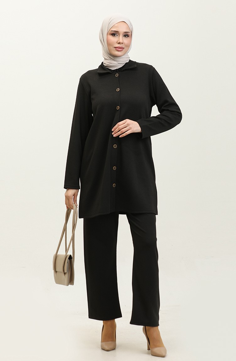 بدلة تونيك وبنطلون من آسيا، قطعتين، 2611-01، أسود 2611-01