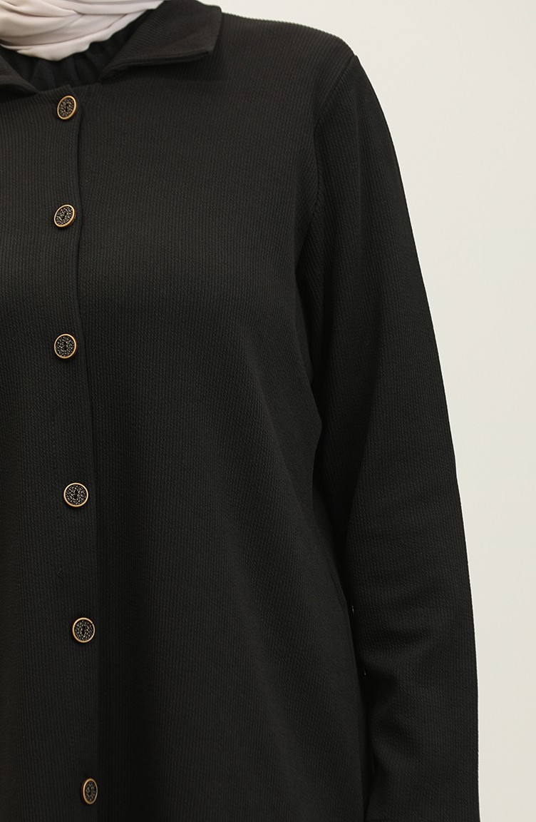 استخدم فيه اللون الأسود. استخدم فيه القماش المحاك. ذو مظهر سادة. المنتج ذو الاستخدام بدون تبطين. المنتج طويلة الأكمام. ياقة القميص تفضل في كثير من الكومبينات. قماشه مناسب لجميع المواسم. نساء. هناك مقاسات كبيرة.