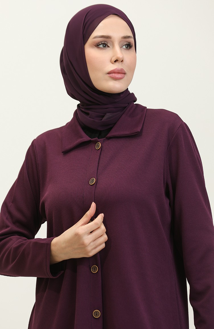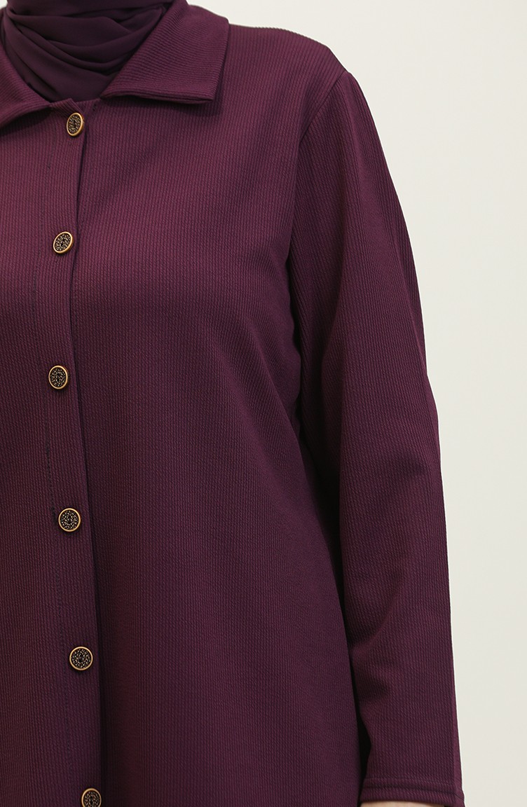 استخدم فيه اللون الارجواني الداكن. استخدم فيه القماش المحاك. ذو مظهر سادة. المنتج ذو الاستخدام بدون تبطين. المنتج طويلة الأكمام. ياقة القميص تفضل في كثير من الكومبينات. قماشه مناسب لجميع المواسم. نساء. هناك مقاسات كبيرة.