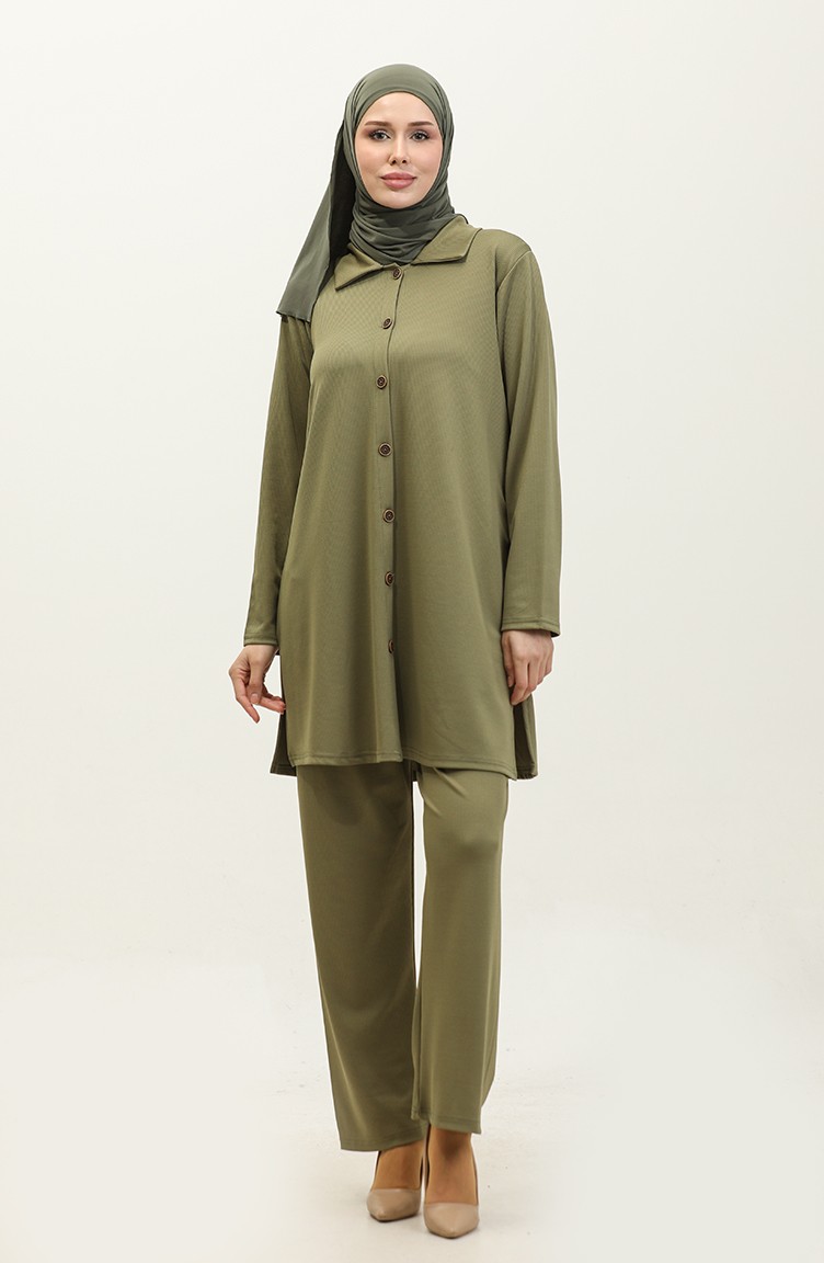 بدلة تونيك وبنطلون من قطعتين من آسيا 2611-12 لون أخضر لوزي 2611-12