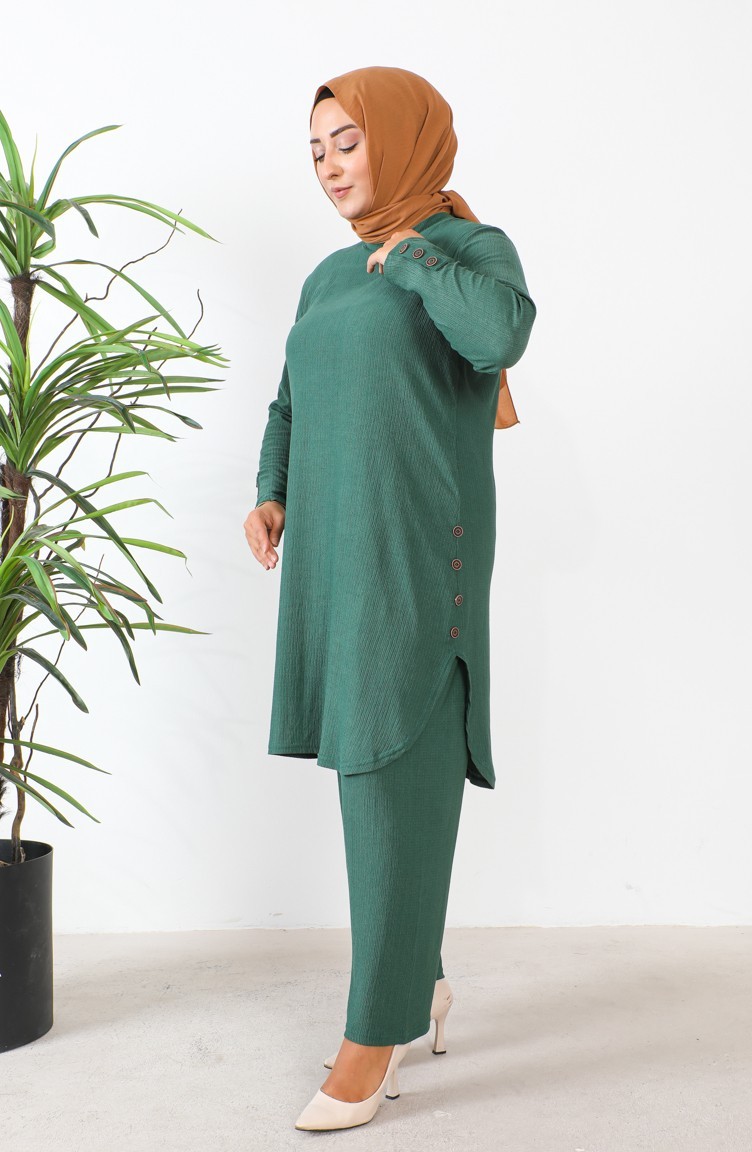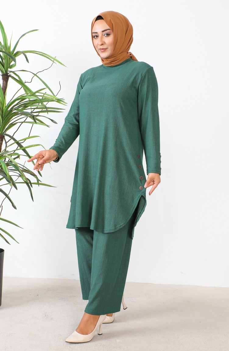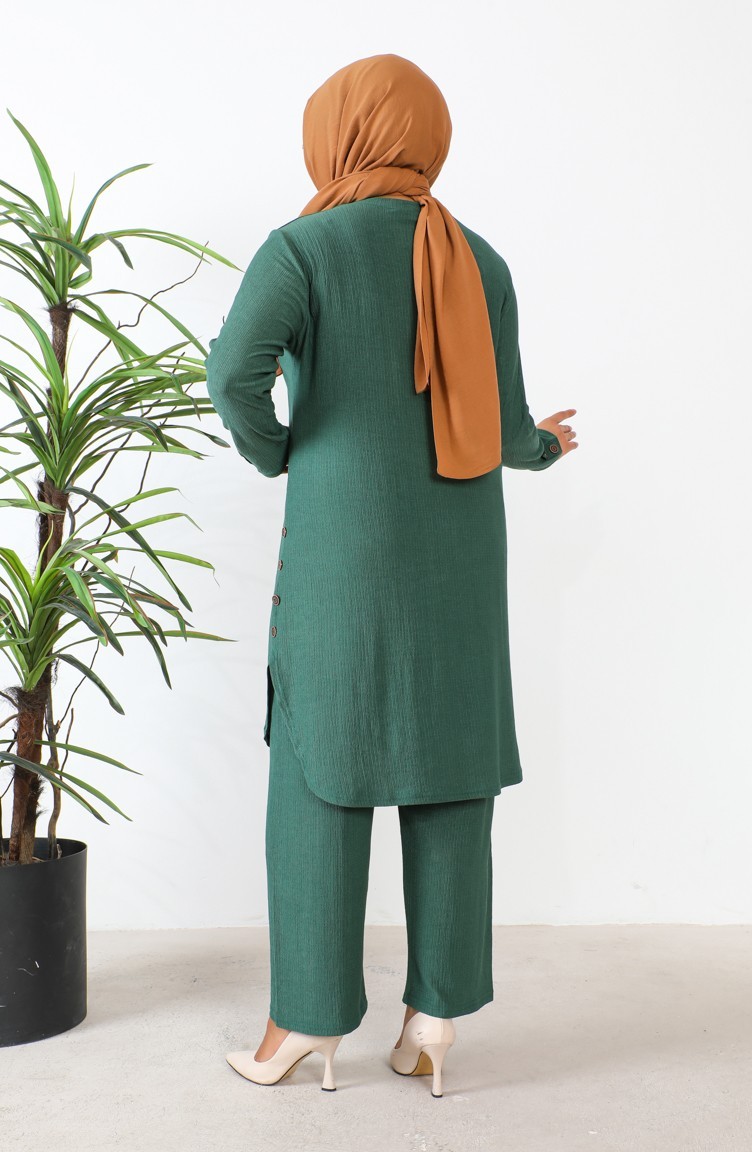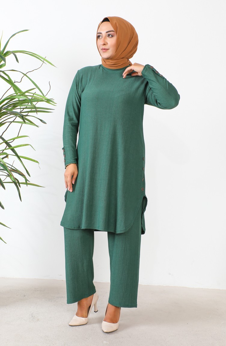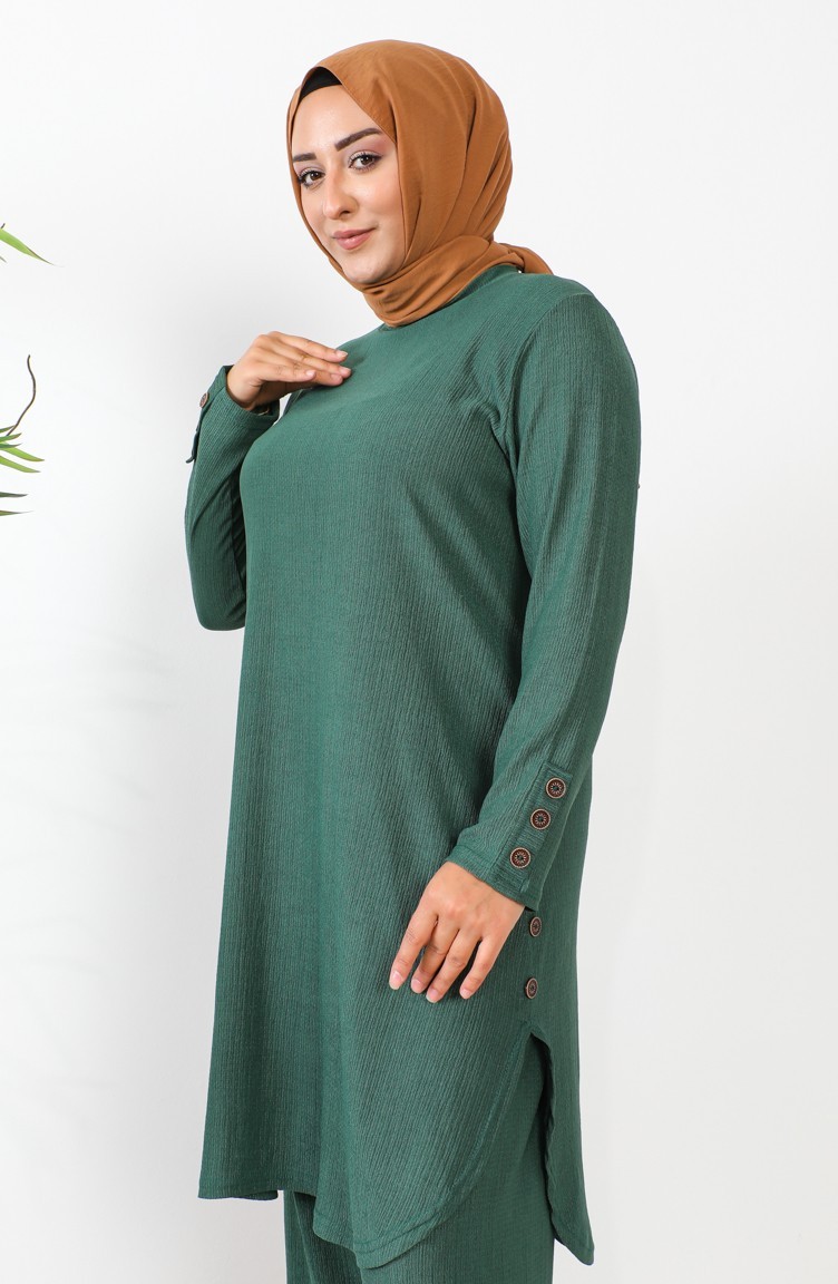 بدلة تونيك بنطلون من قطعتين مقاس كبير، لون أخضر زمردي، 2658-01 2658-01