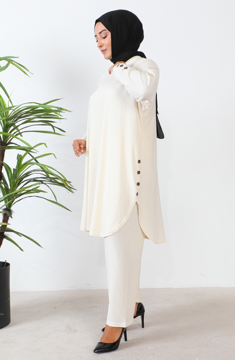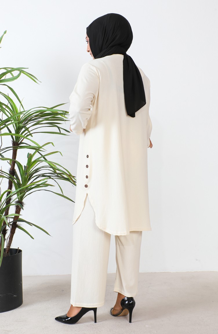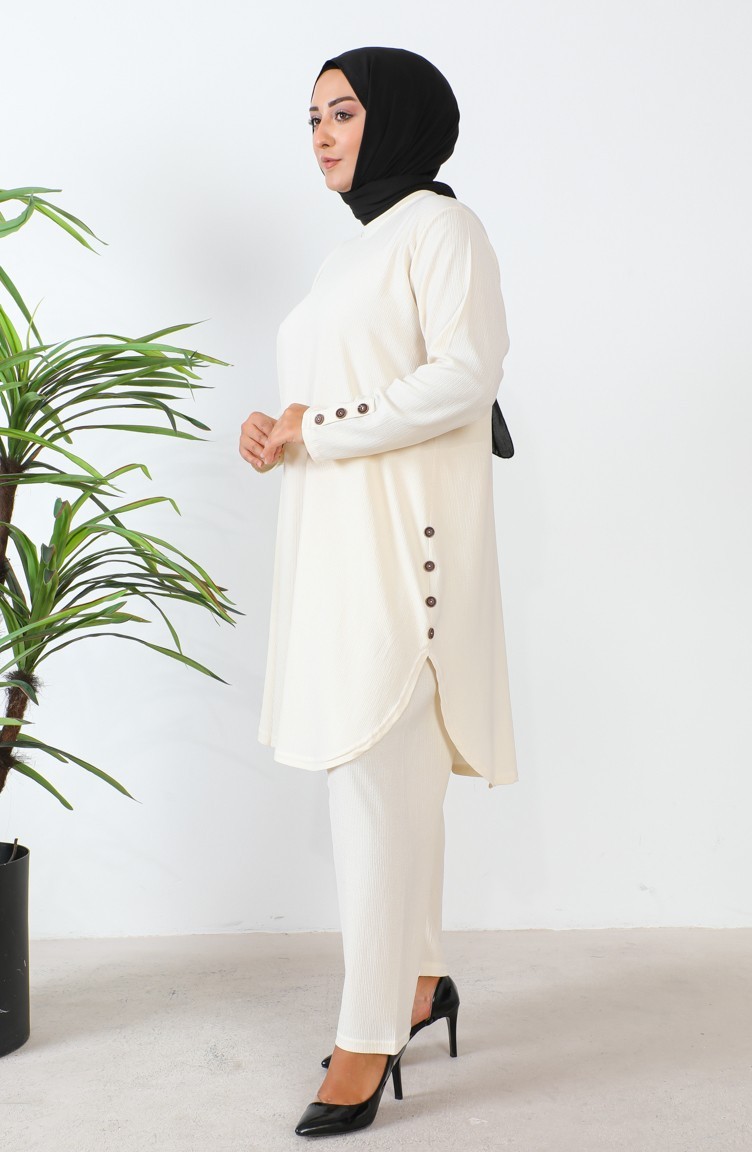 بدلة تونيك بنطلون مقاس كبير من قطعتين، لون كريمي، 2658-04 2658-04