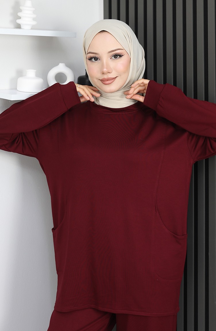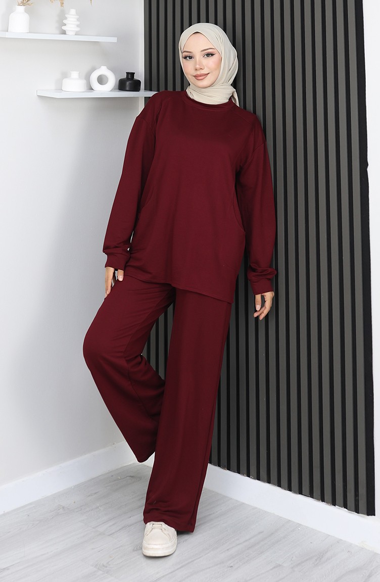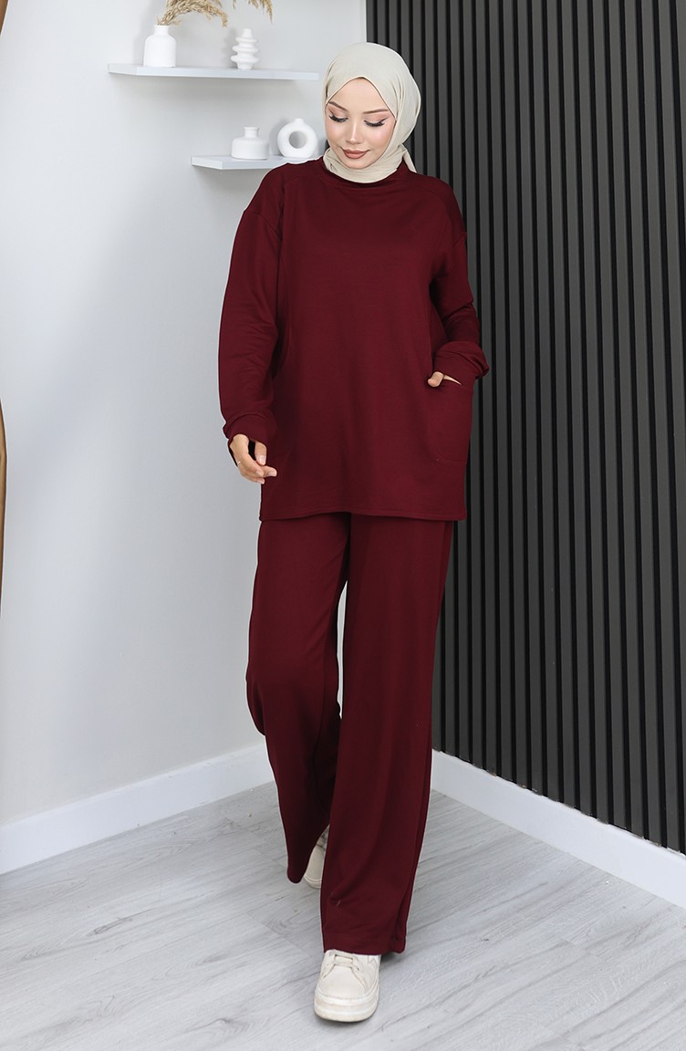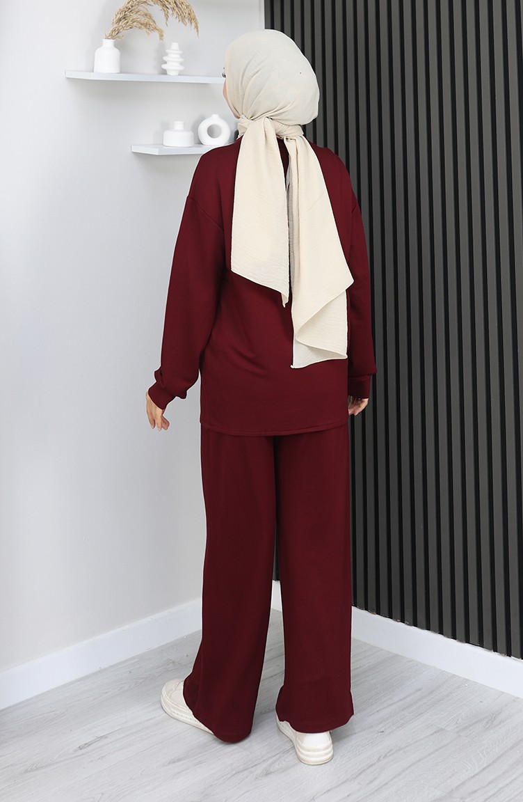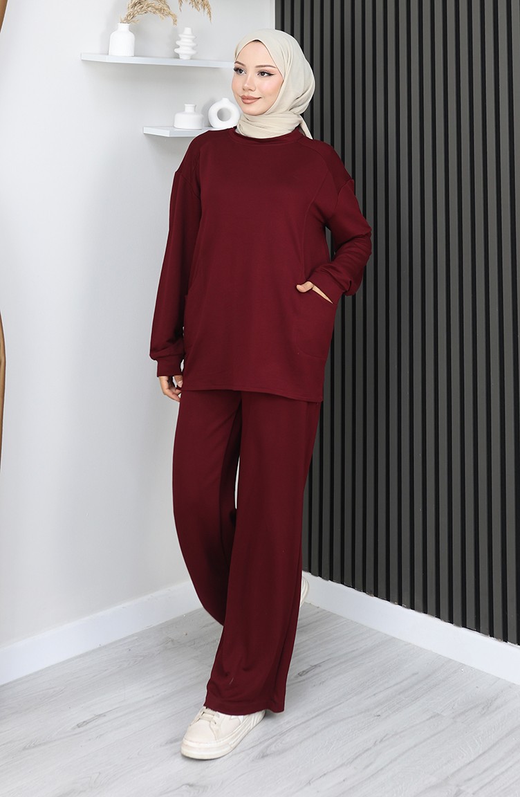 بدلة أويشو من قماش تونيك وبنطلون من قطعتين، لون أحمر كلاريت، 2163-04 2163-04