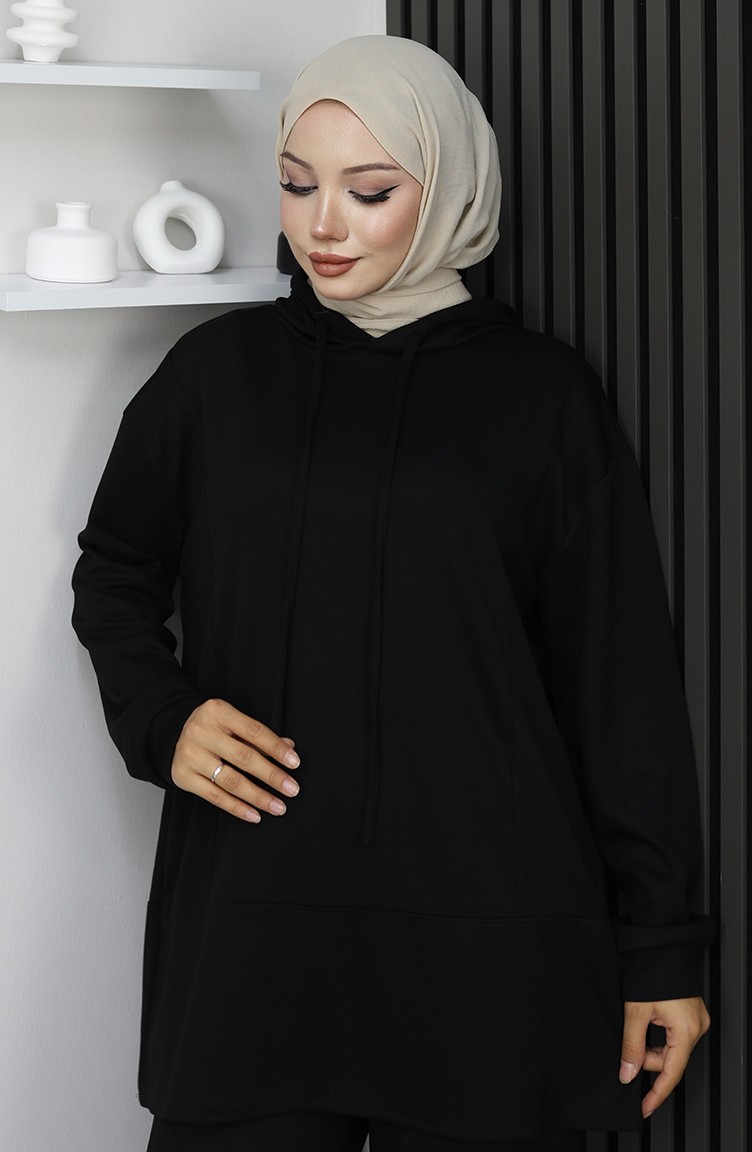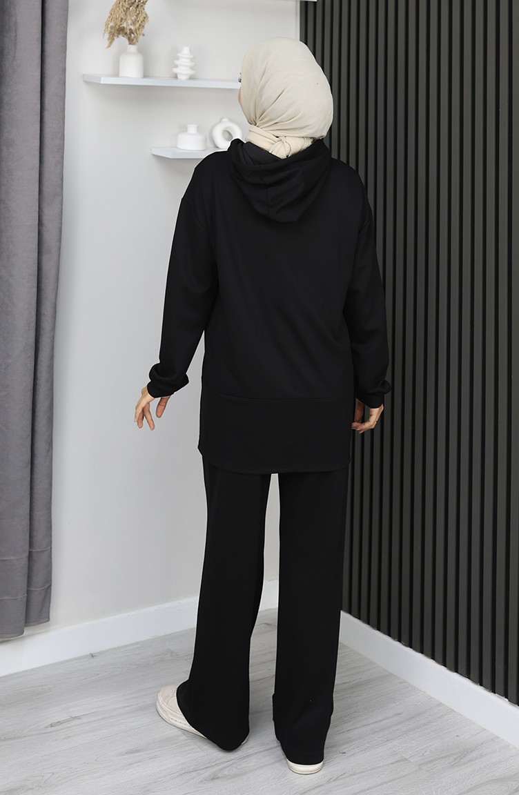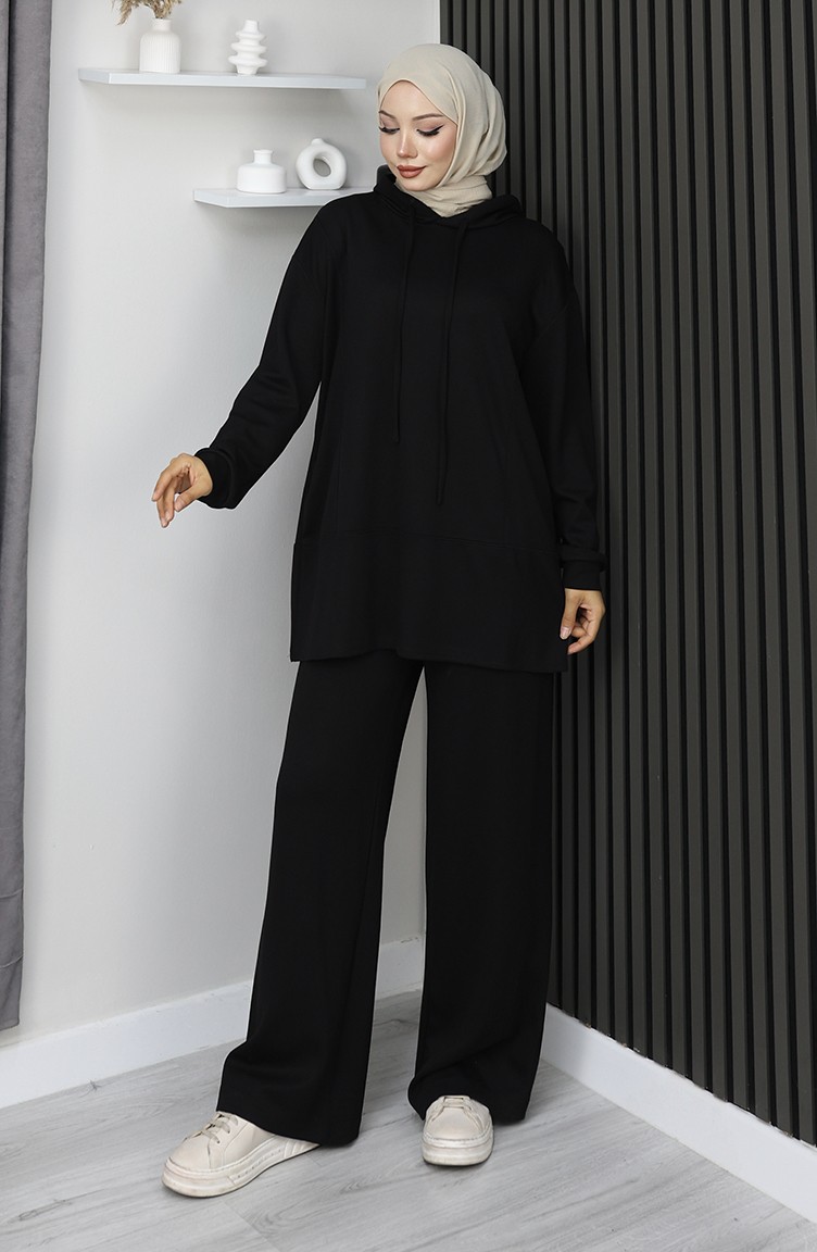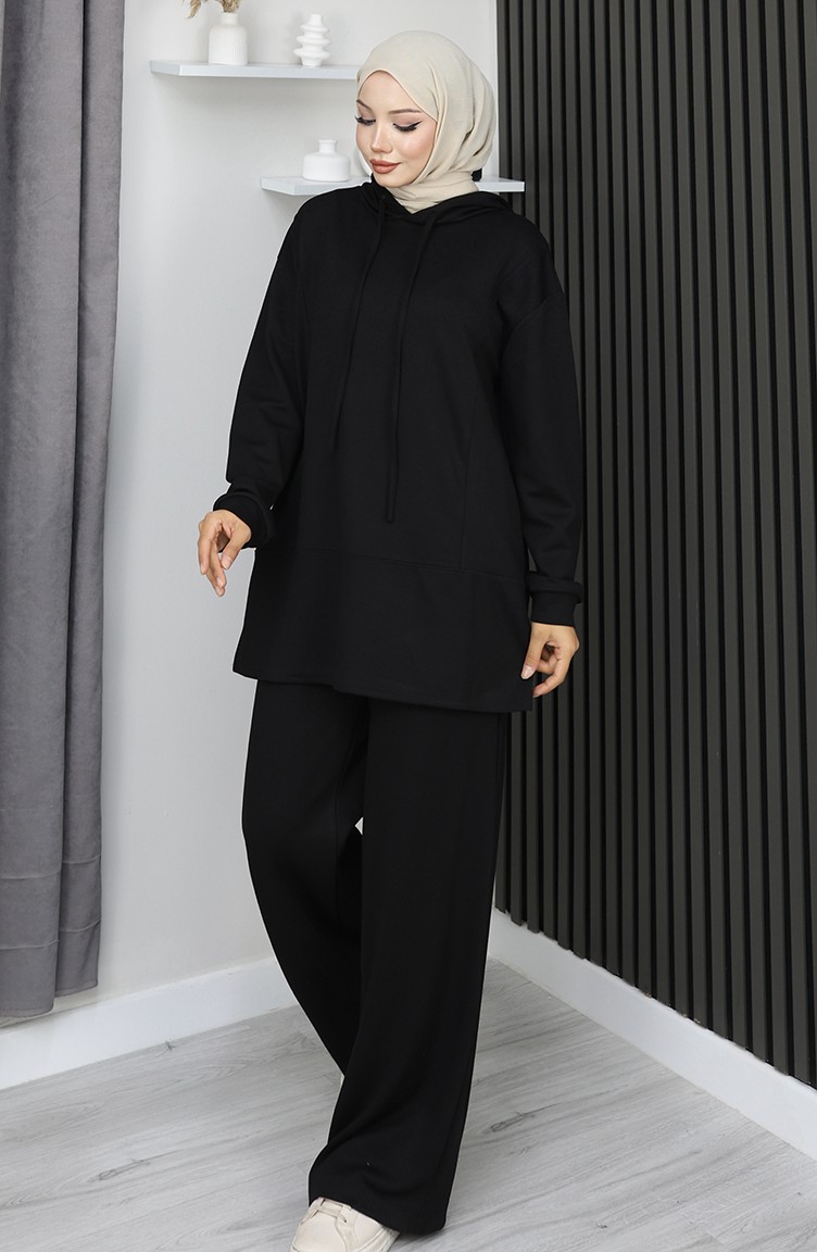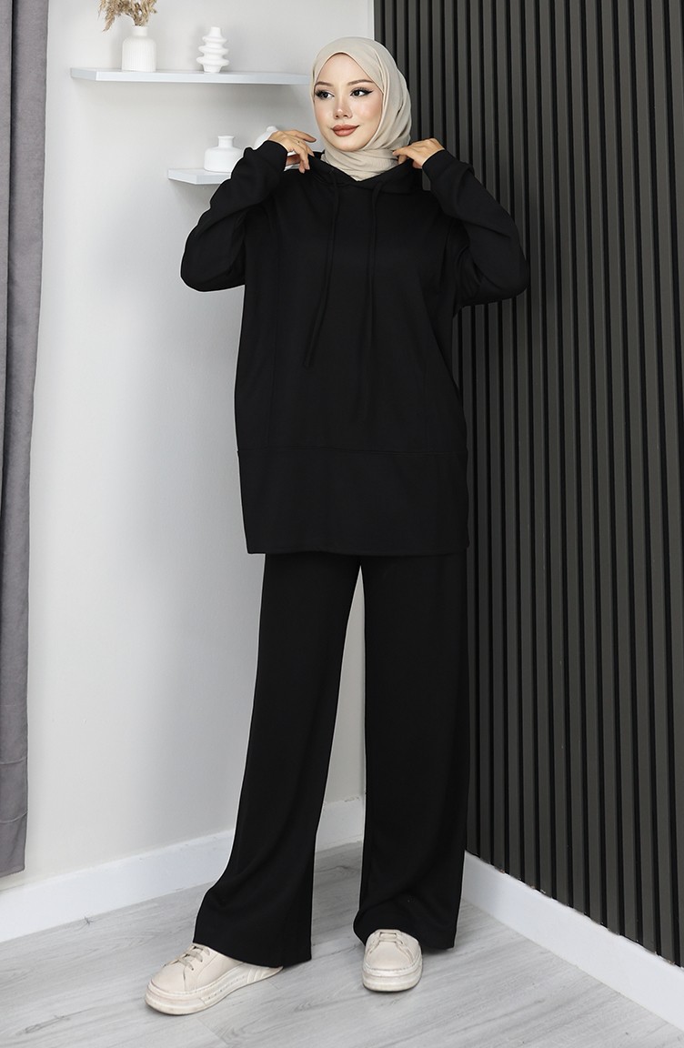 بدلة حجاب من قطعتين من قماش أويشو 2168-03 أسود 2168-03