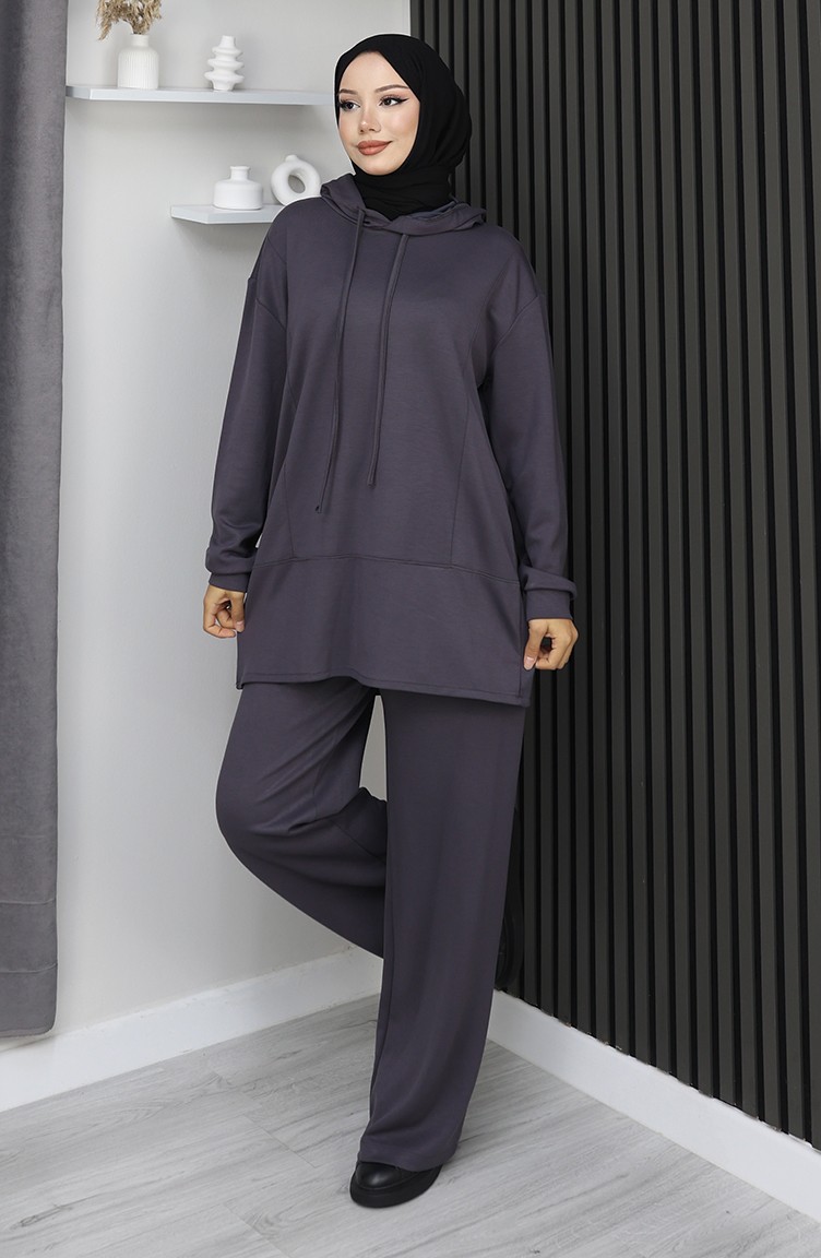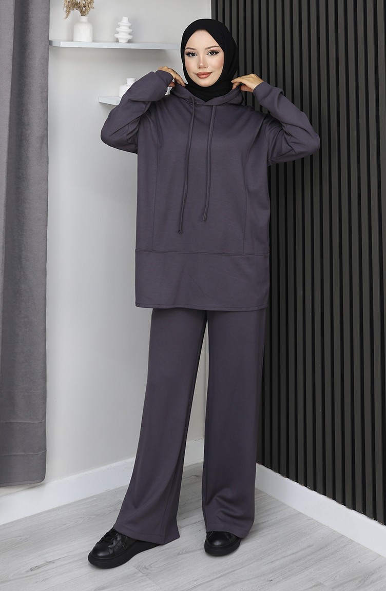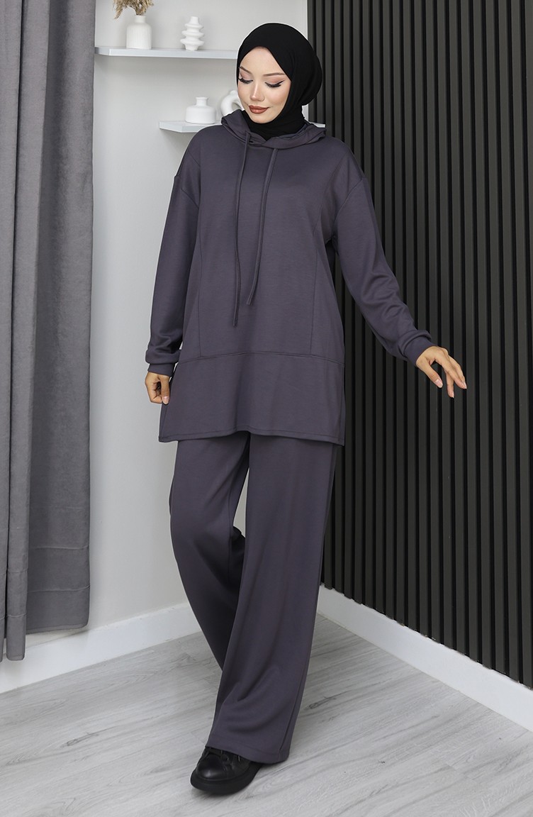 بدلة حجاب من قطعتين من قماش أويشو 2168-04 أنثراسايت 2168-04