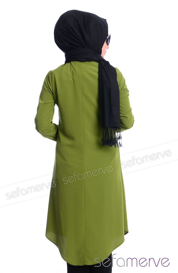استخدم فيه اللون الزيتي. ذو مظهر سادة. المنتج ذو الاستخدام بدون تبطين. استعمل فيها الياقة الدائرية. قماشه مناسب لجميع المواسم. القياس التي في الصورة هي قياس العارضة.