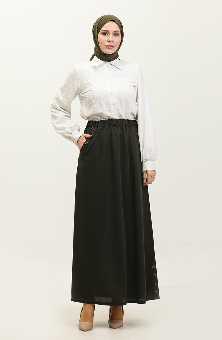 تنورة نسائية بأزرار من فريدي 4202-04 كاكي 4202-04