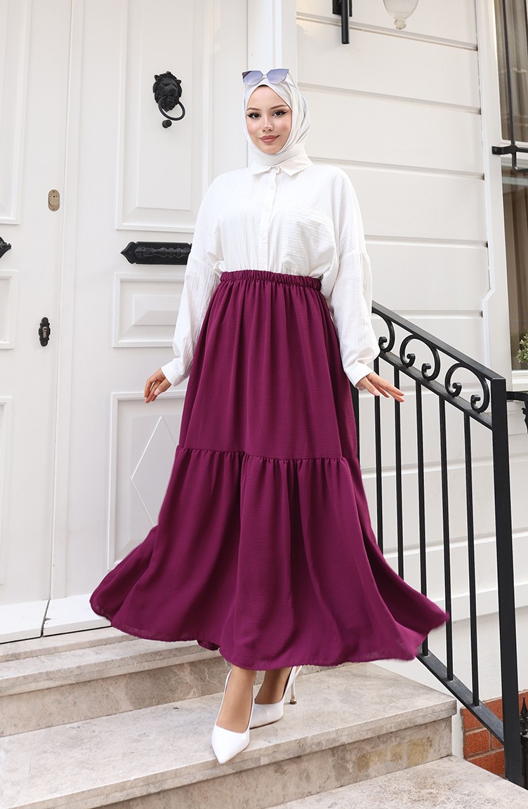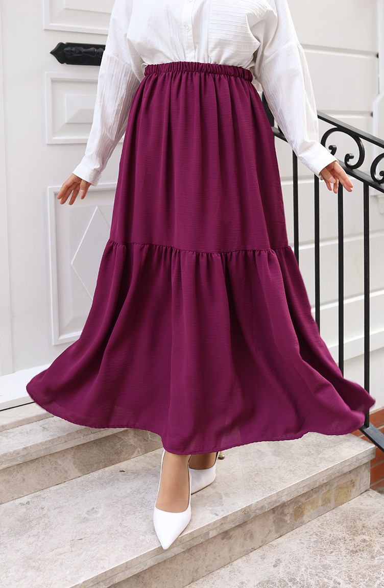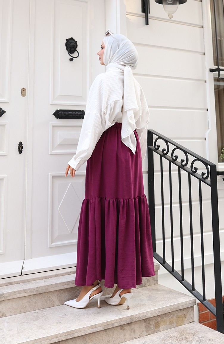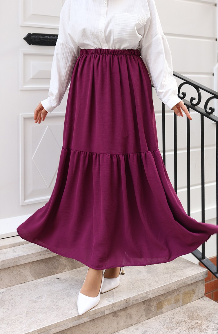 تنورة بقصة مريحة وخصر مطاطي 0227A-03 بنفسجي 0227A-03