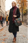 معطف كشمير بغطاء رأس وأزرار أمامية 0188-02 رمادي 0188-02