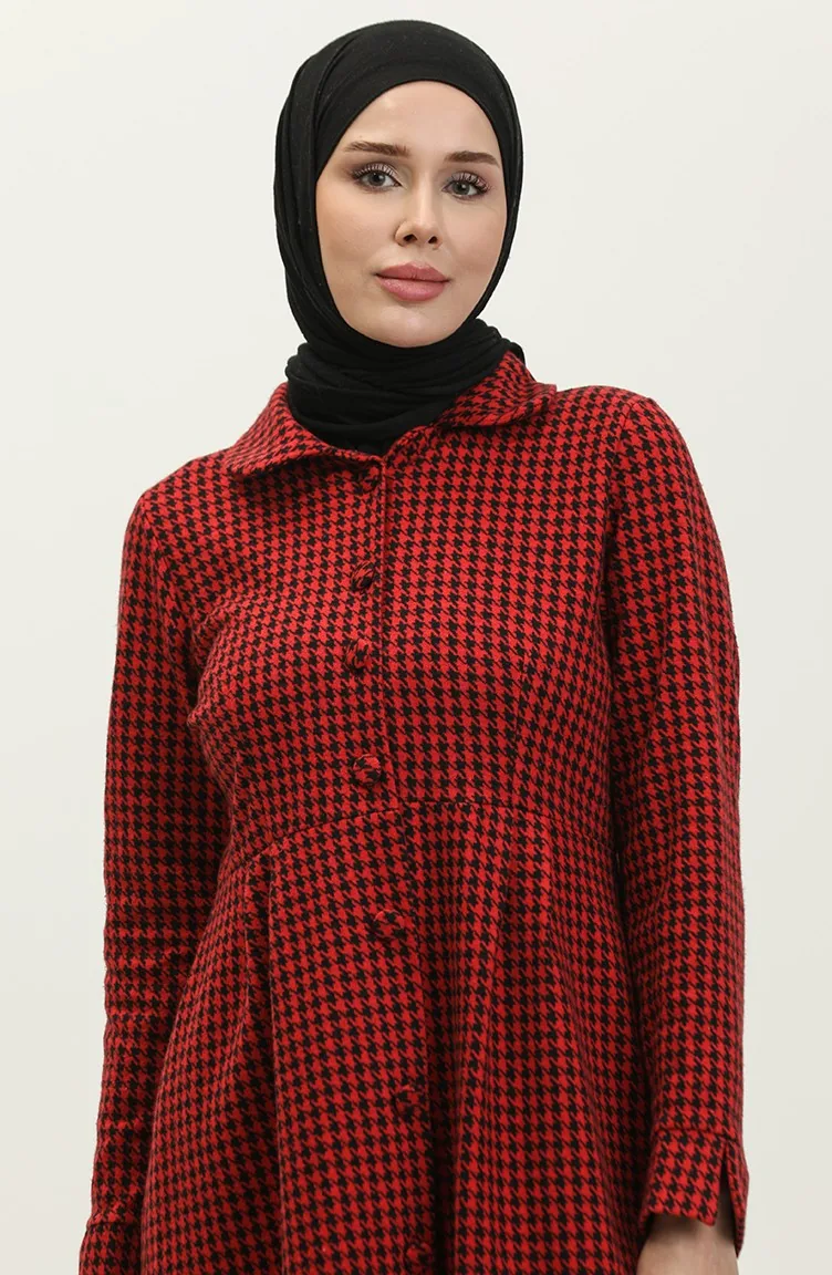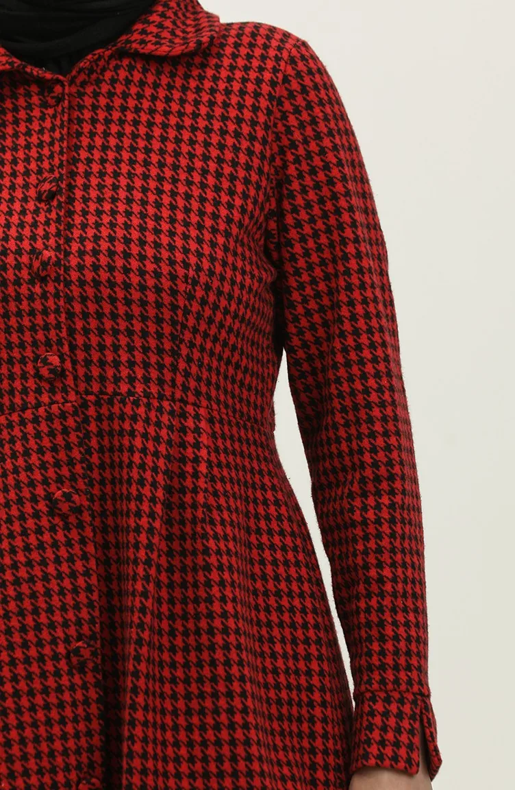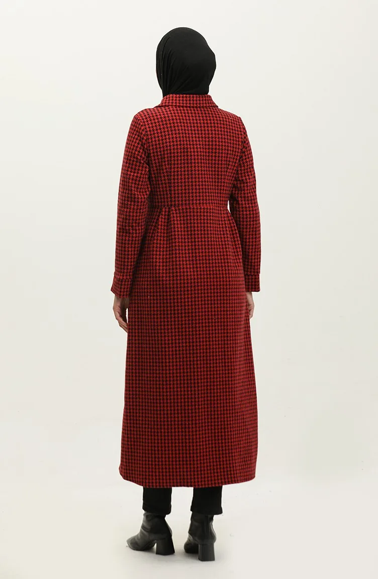 سترة طويلة منقوشة بأزرار 1981-09 أحمر 1981-09