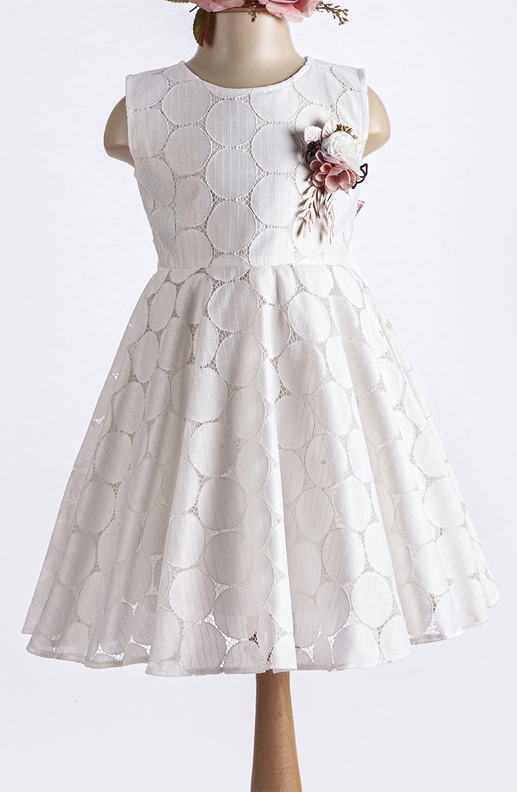 Puanlı Kız Çocuk Elbisesi TVD2280PUAN-01 Beyaz