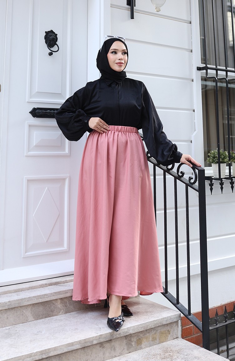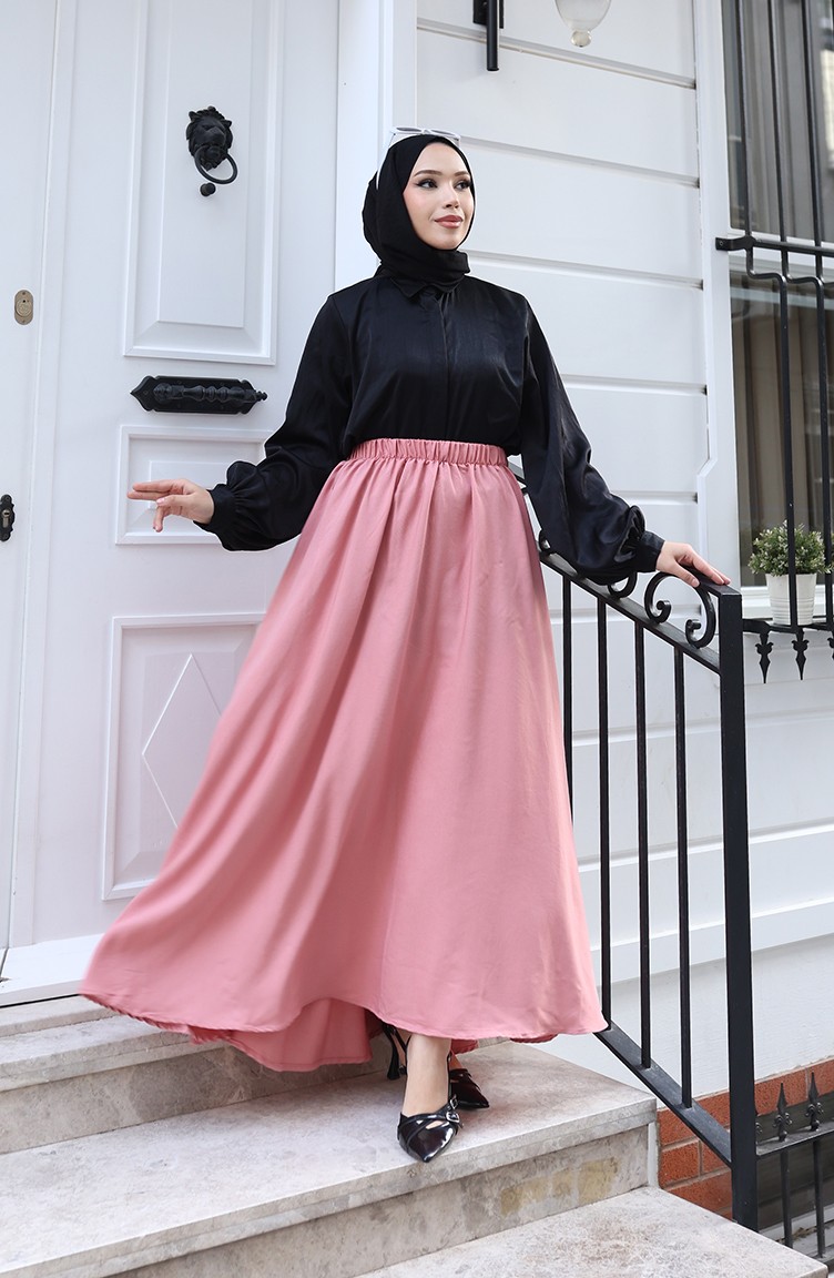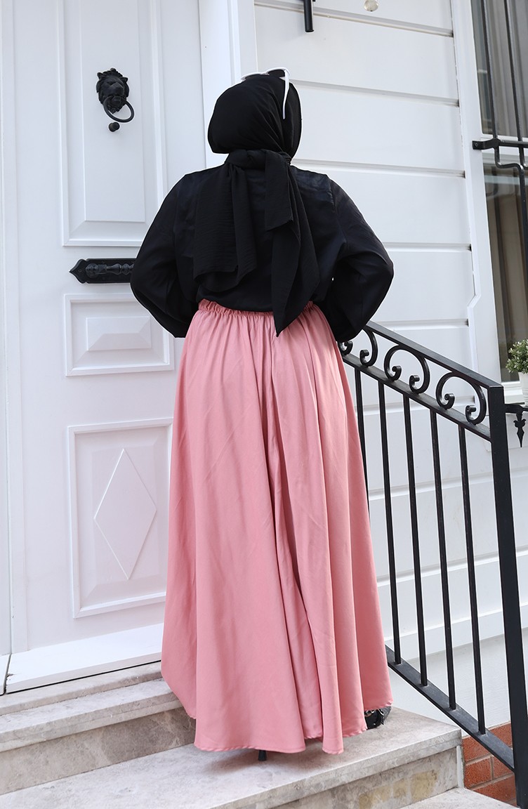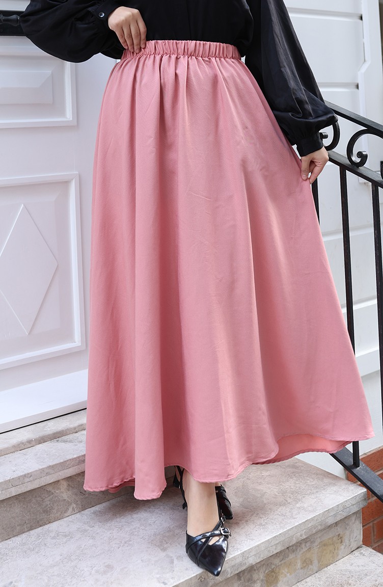 Beli Lastikli Rahat Kesim Etek 0227-06 Gül Kurusu