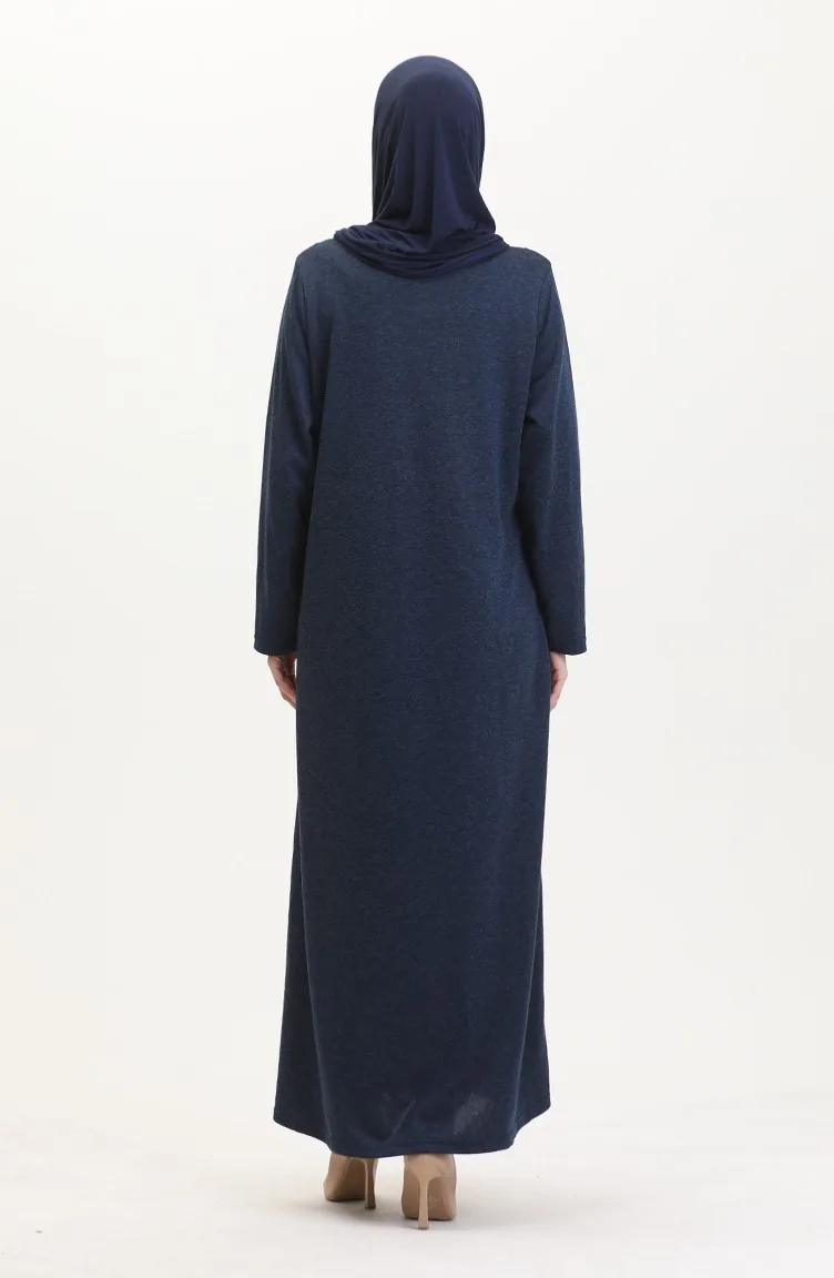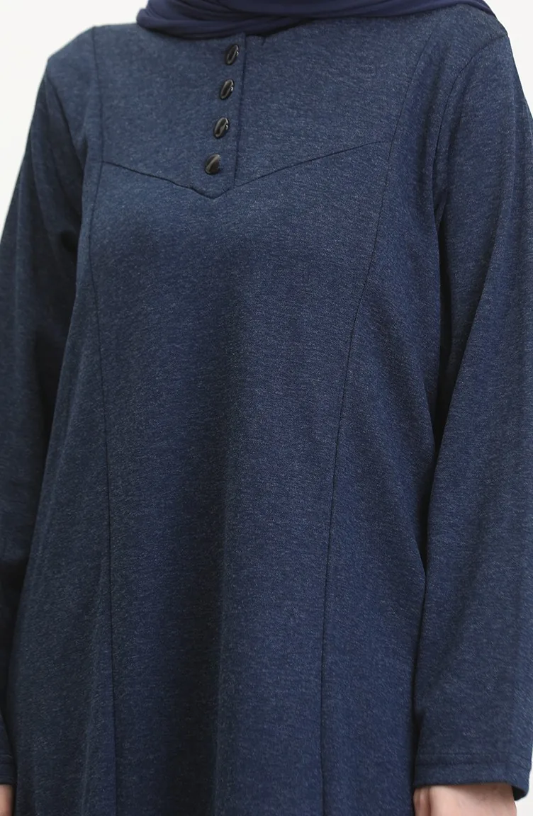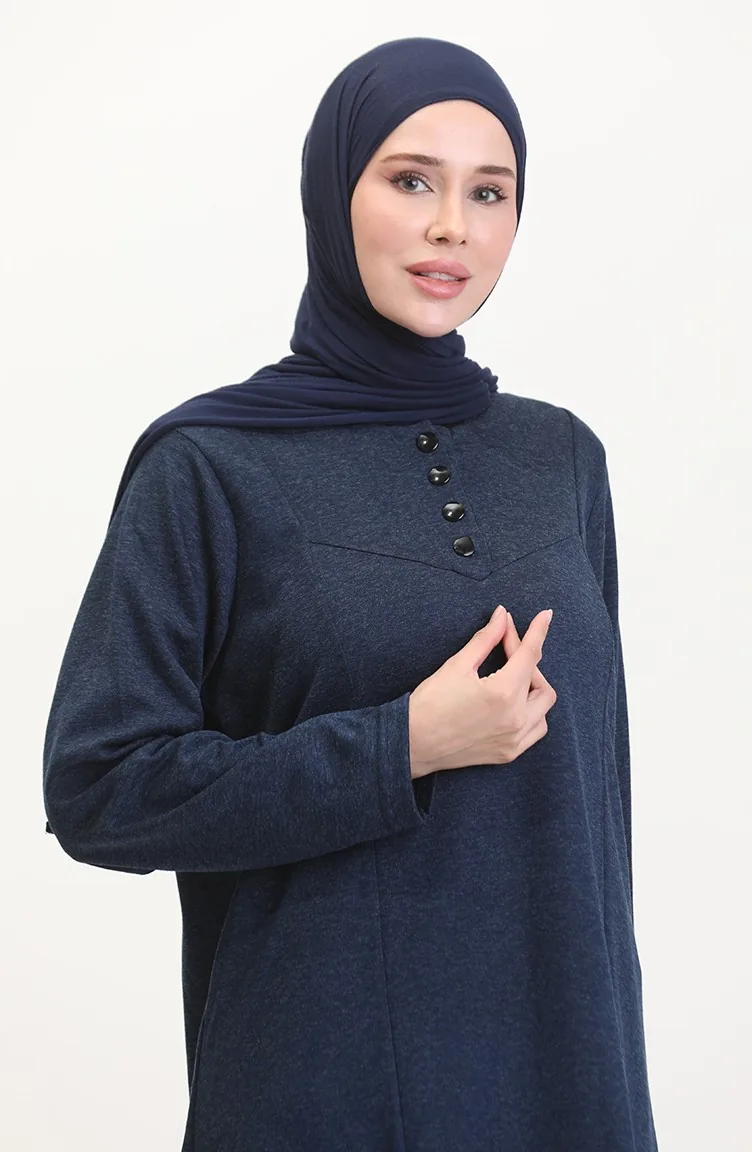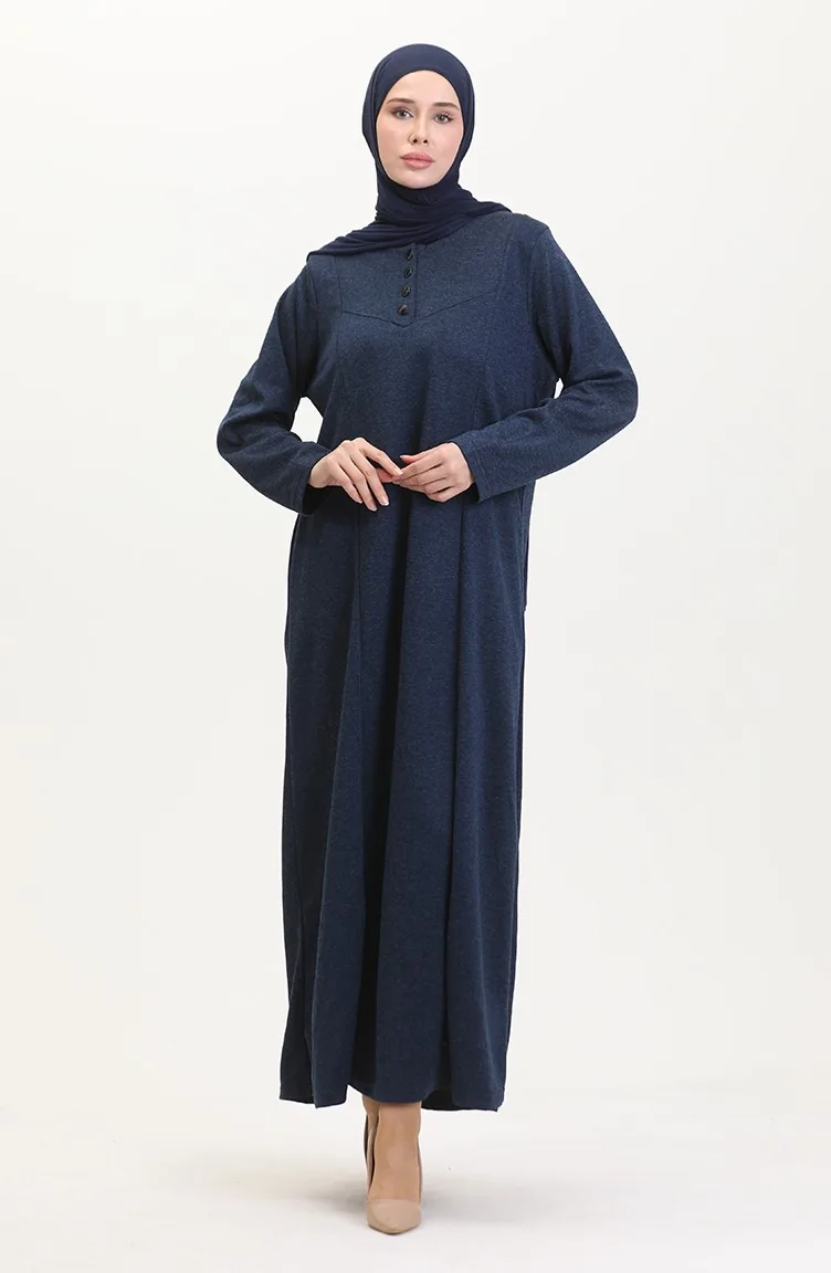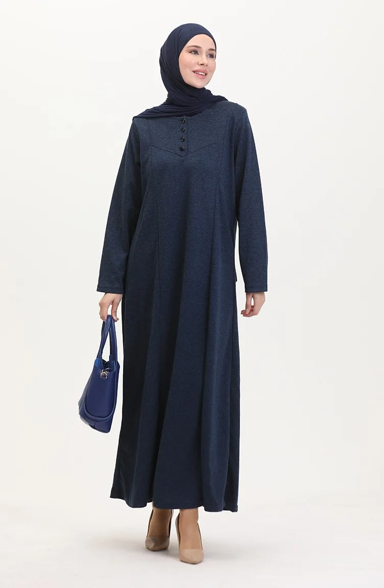 Büyük Beden Düğme Detaylı Elbise 0532-04 Lacivert
