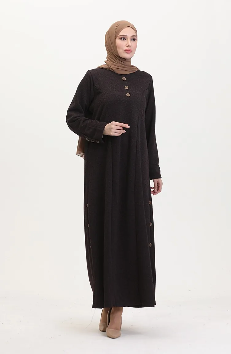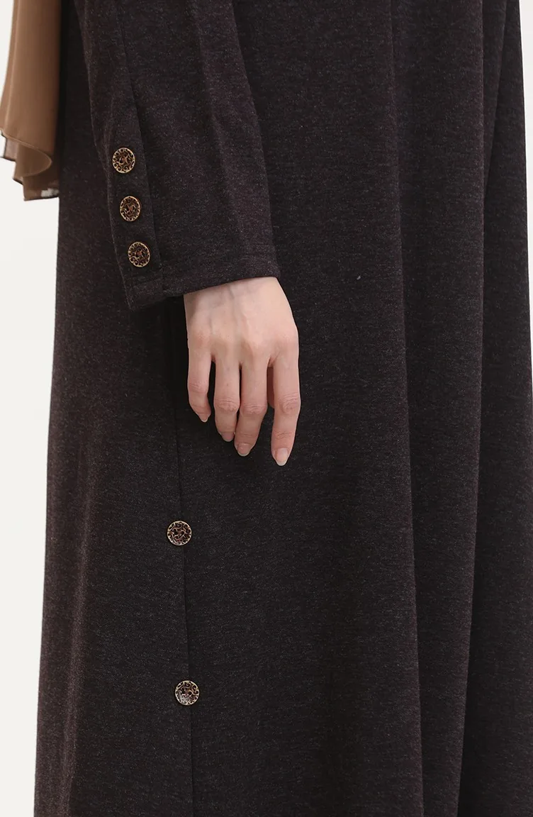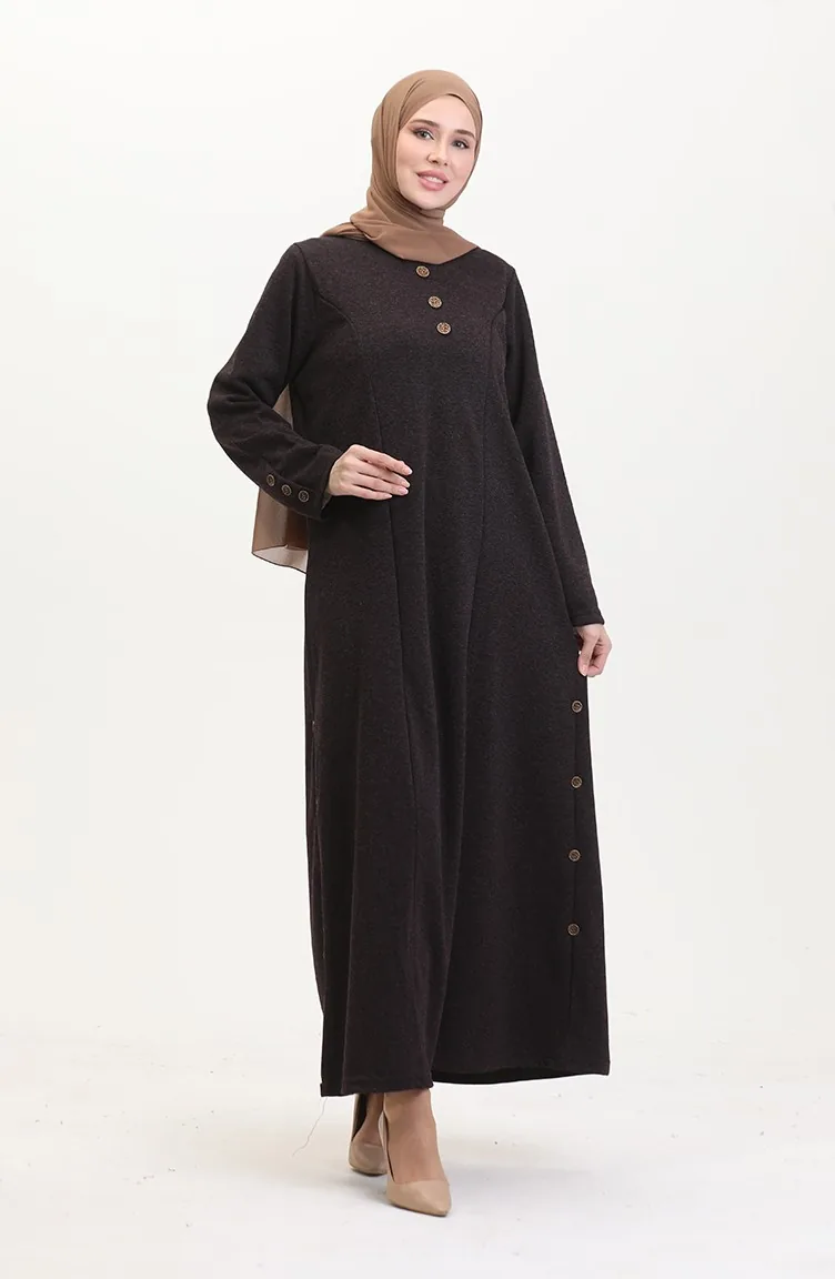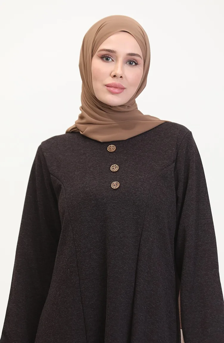 Büyük Beden Düğme Detaylı Elbise 0533-01 Mor