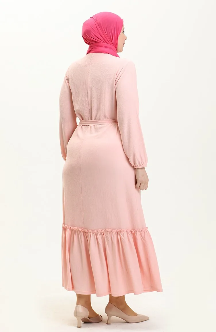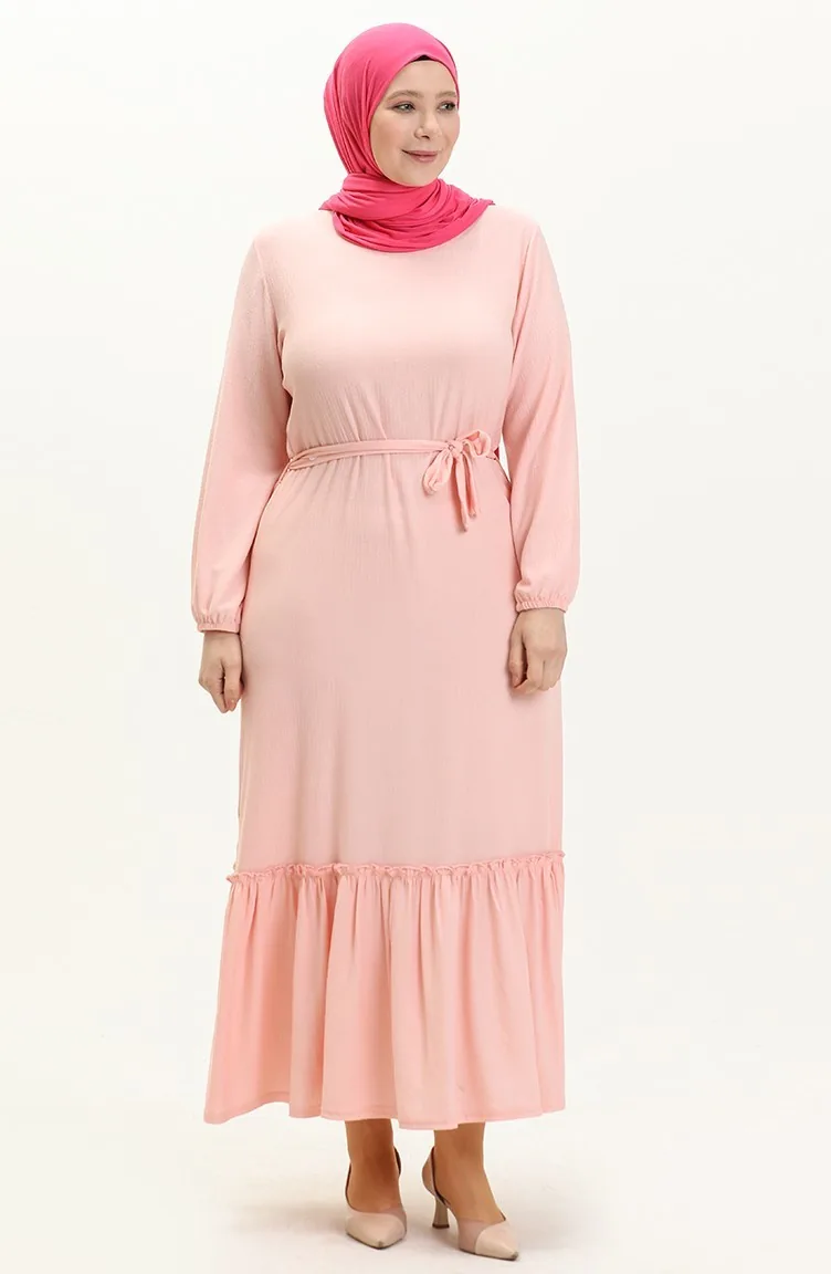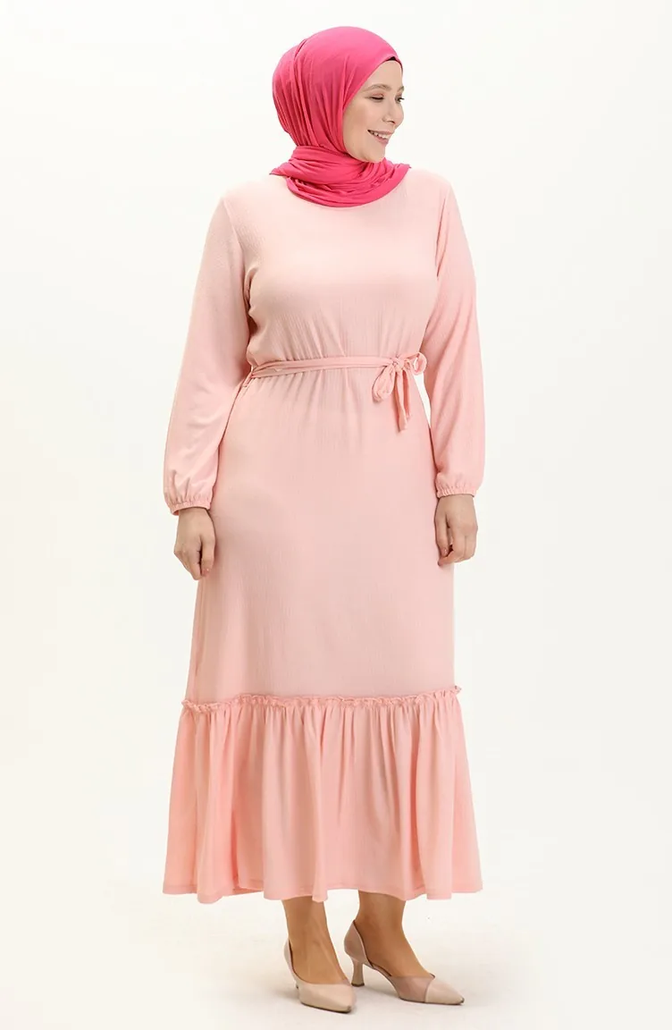 Farbalı Büyük Beden Elbise 4581-06 Pudra