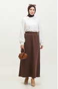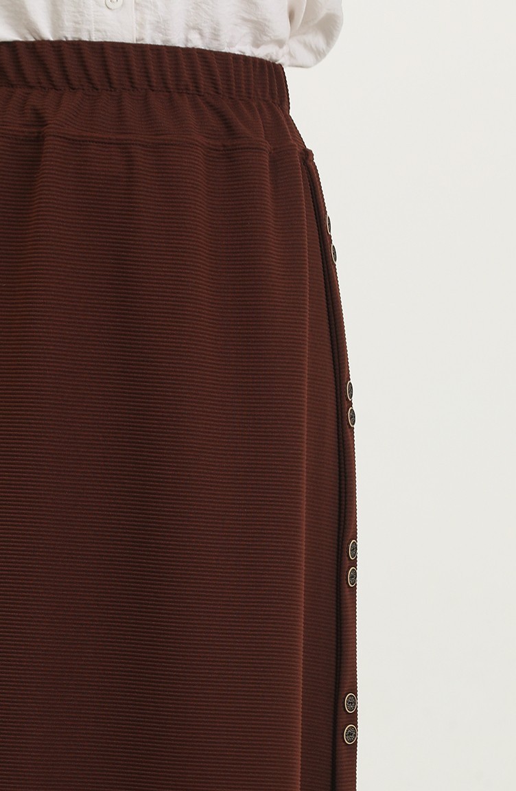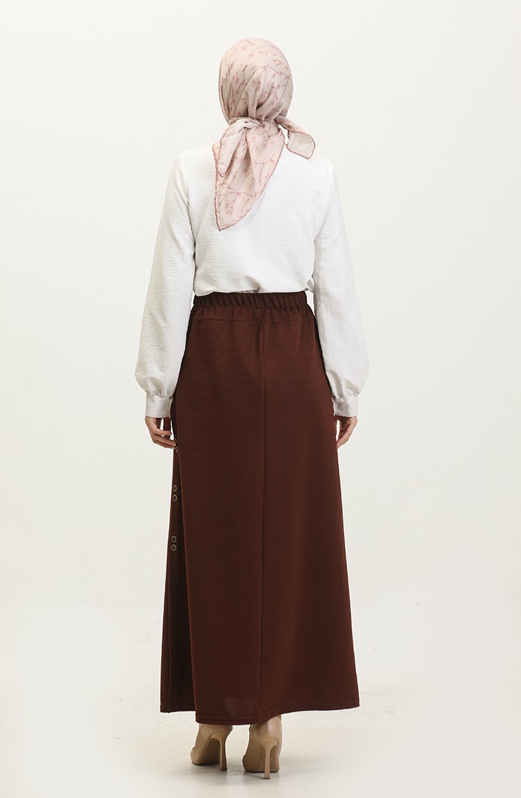 Büyük Beden Düğme Detaylı Etek 4206-02 Taba