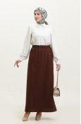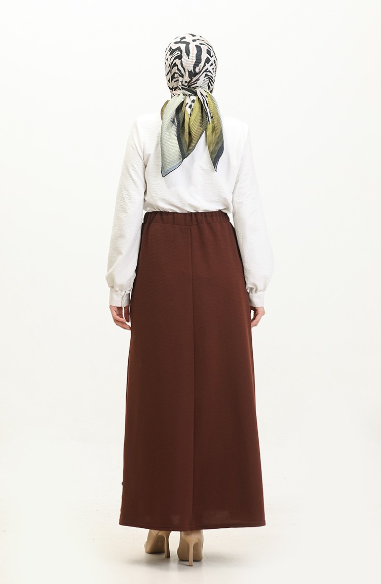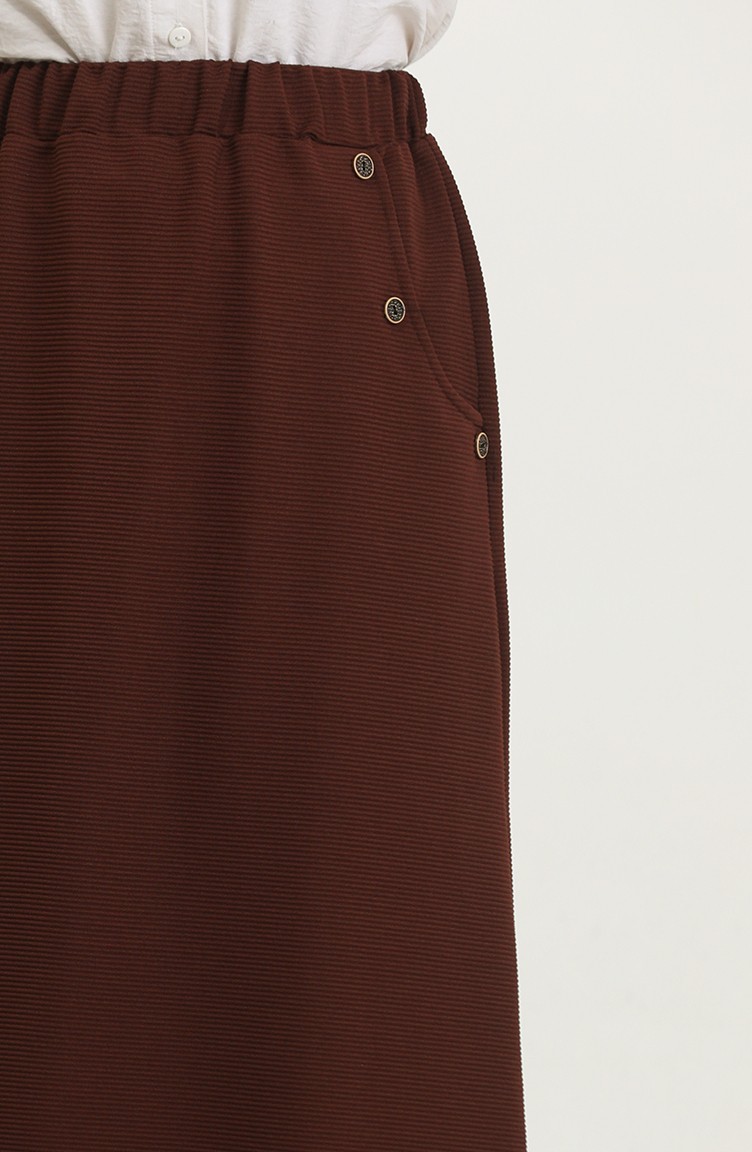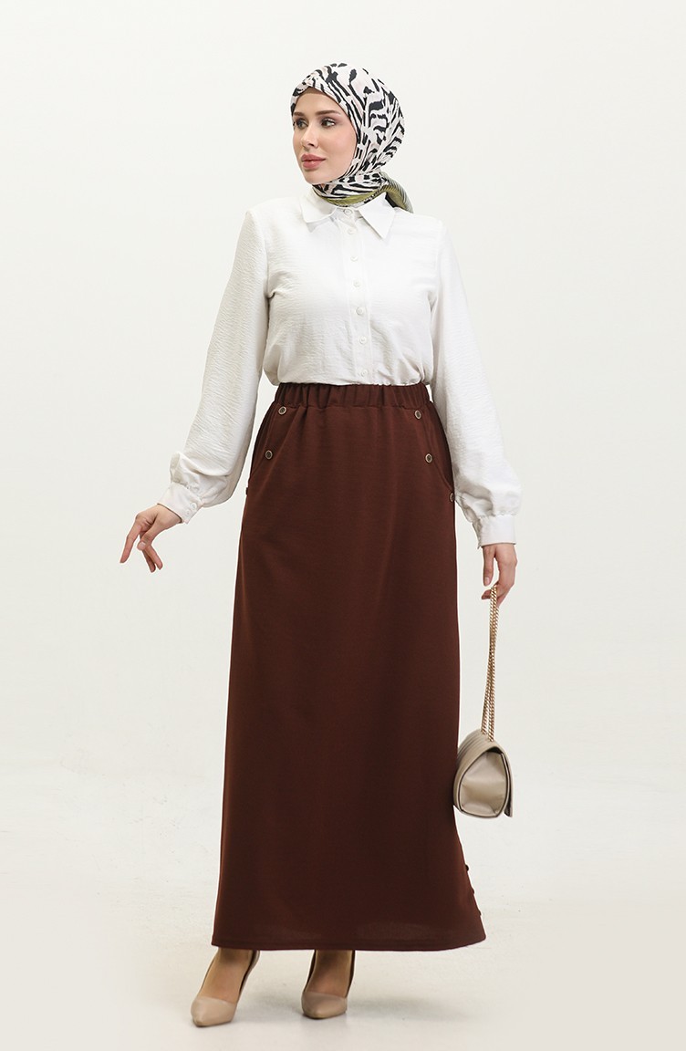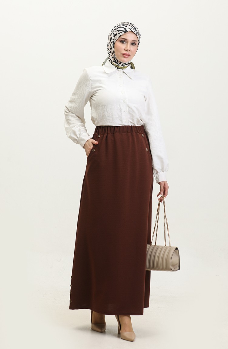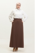 Büyük Beden Düğme Detaylı Etek 4208-02 Taba