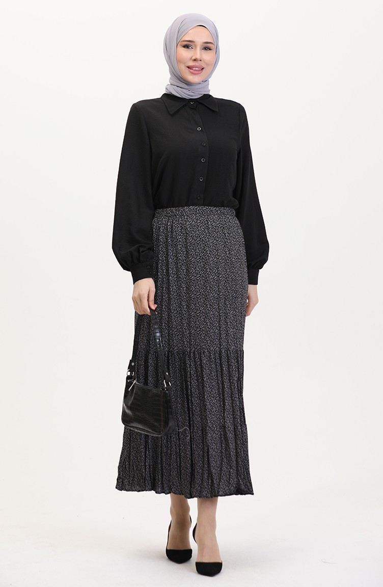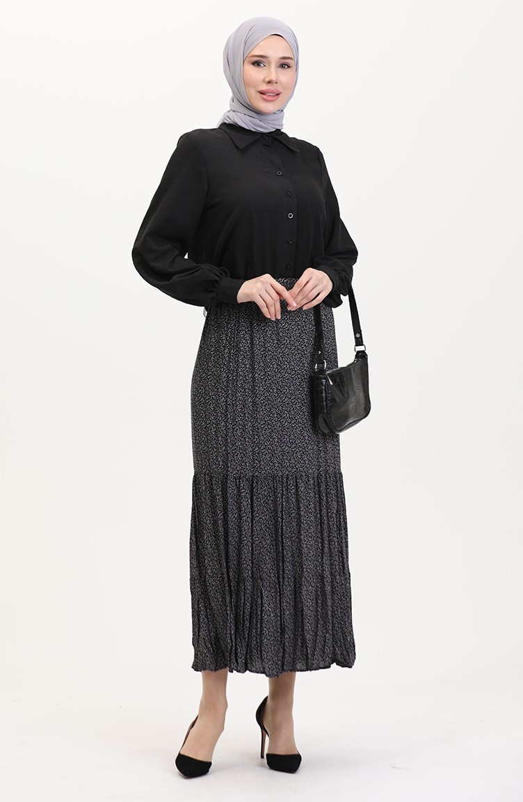Ferah Katlı Çingene Büyük Beden Etek 3165A-01 Siyah