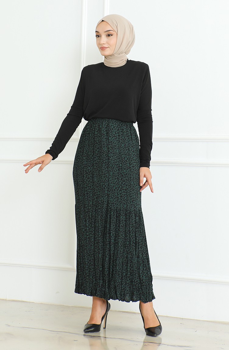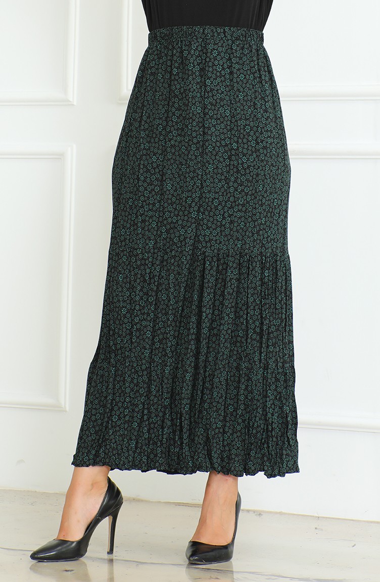 Ferah Katlı Çingene Büyük Beden Etek 3165B-04 Yeşil