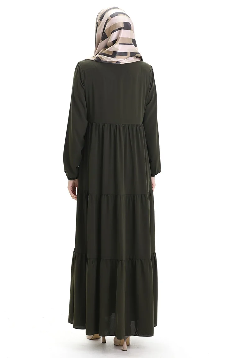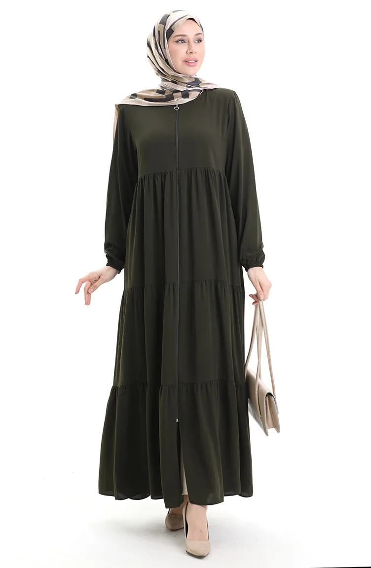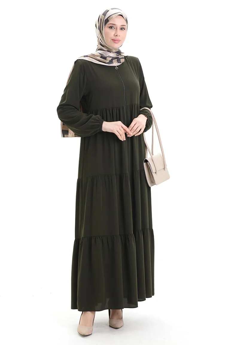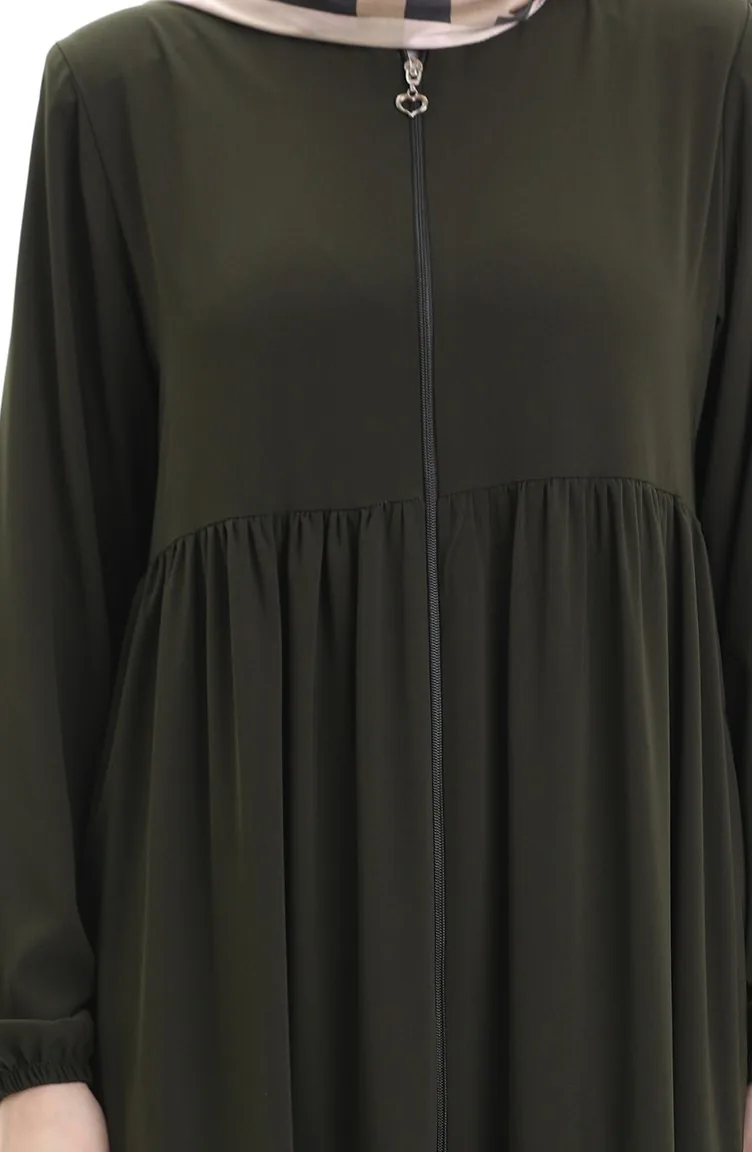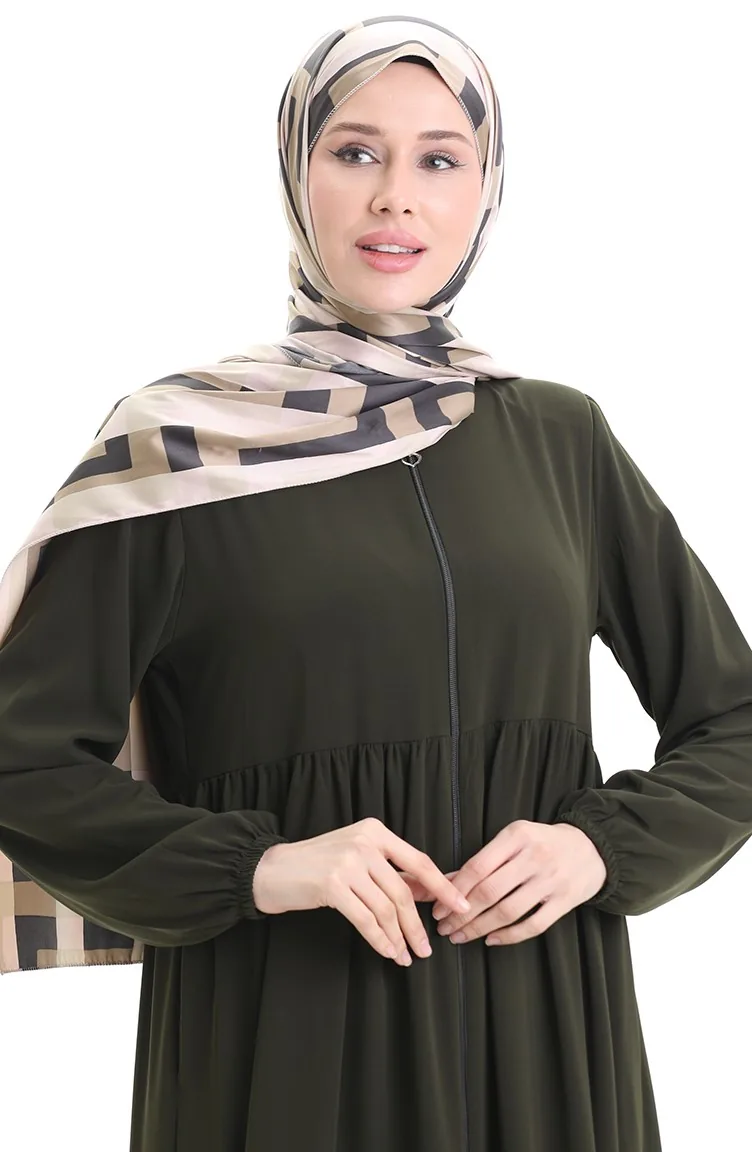 Büyük Beden Kolu Lastikli Fermuarlı Ferace 5082-03 Haki