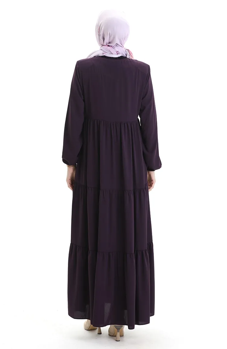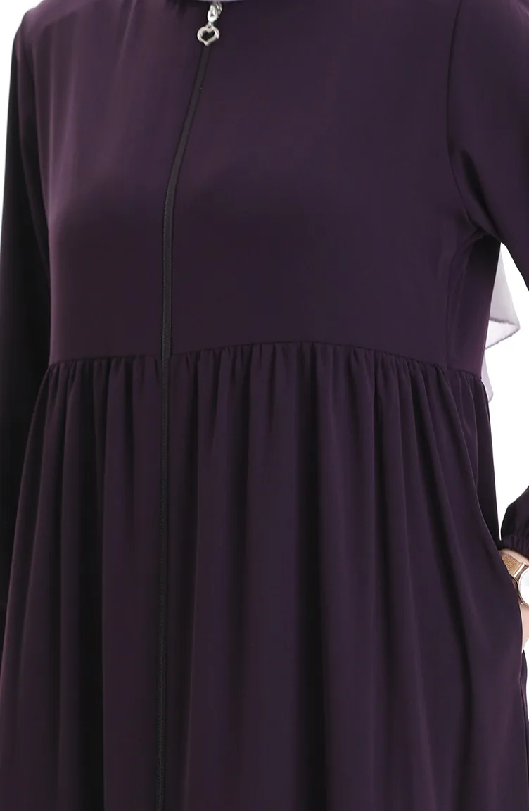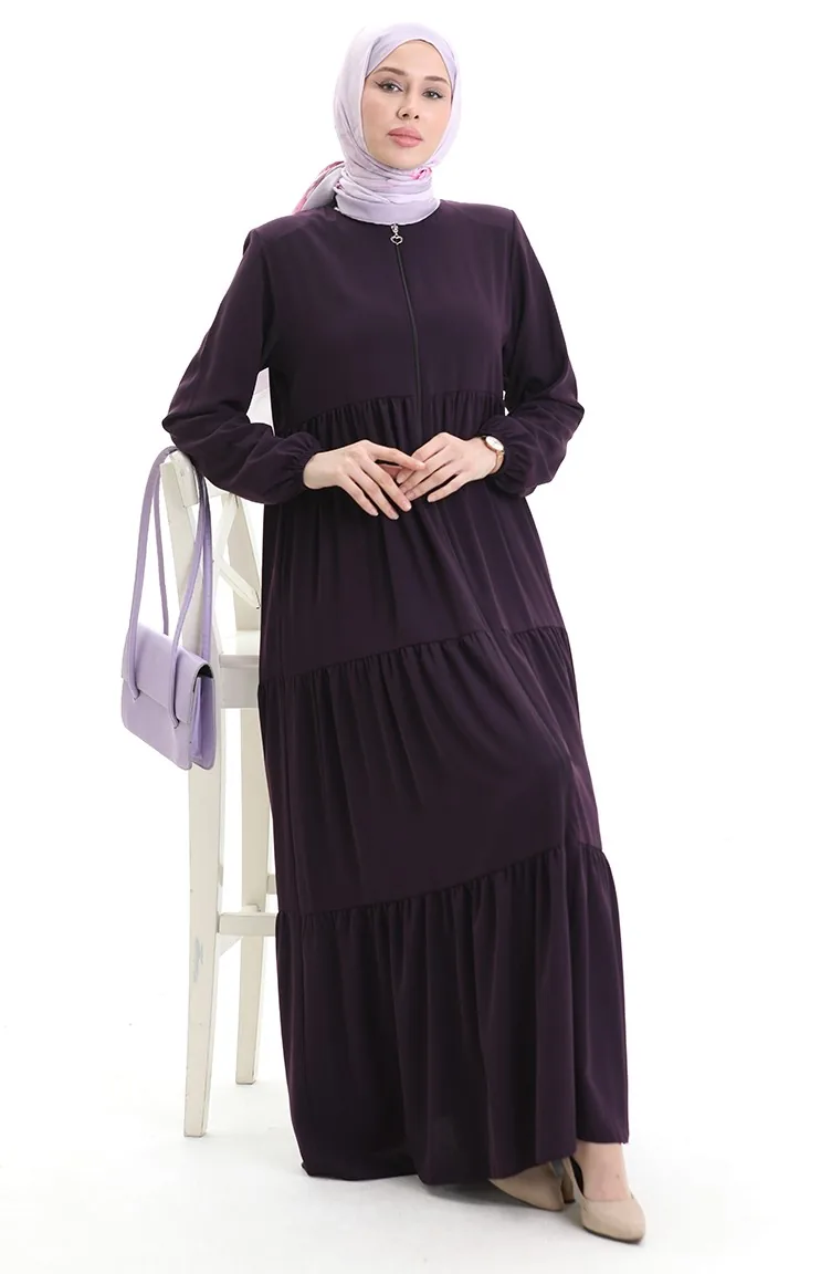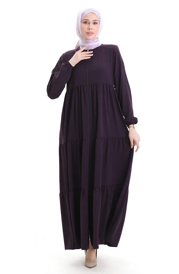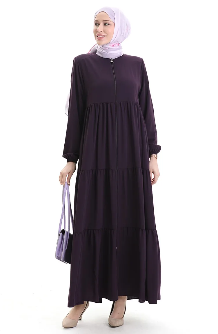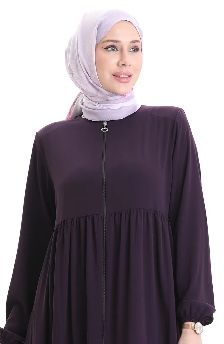 Büyük Beden Kolu Lastikli Fermuarlı Ferace 5082-04 Mürdüm