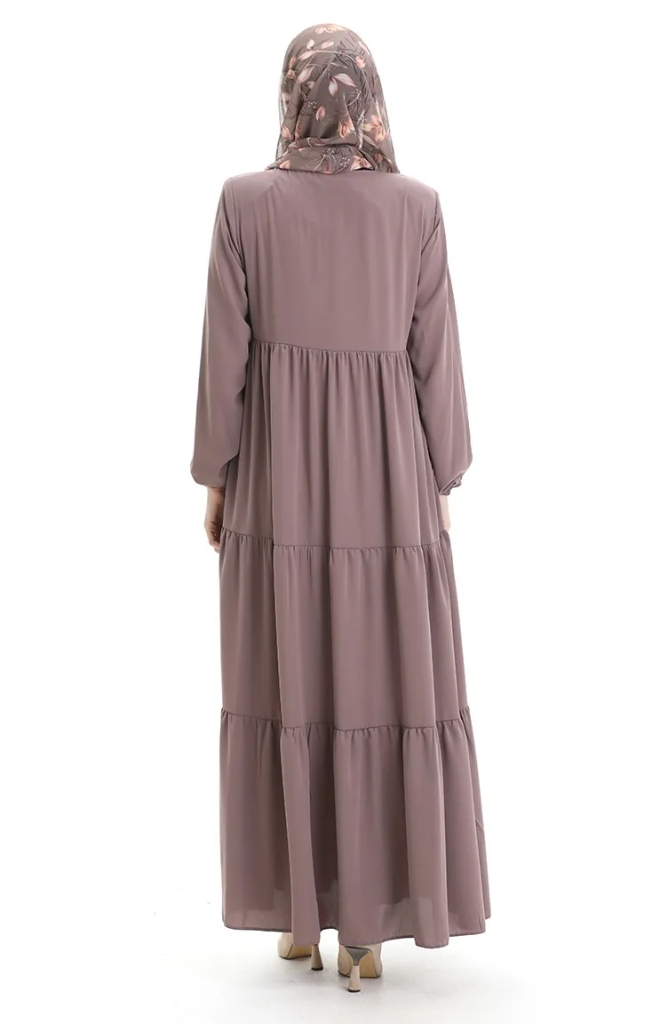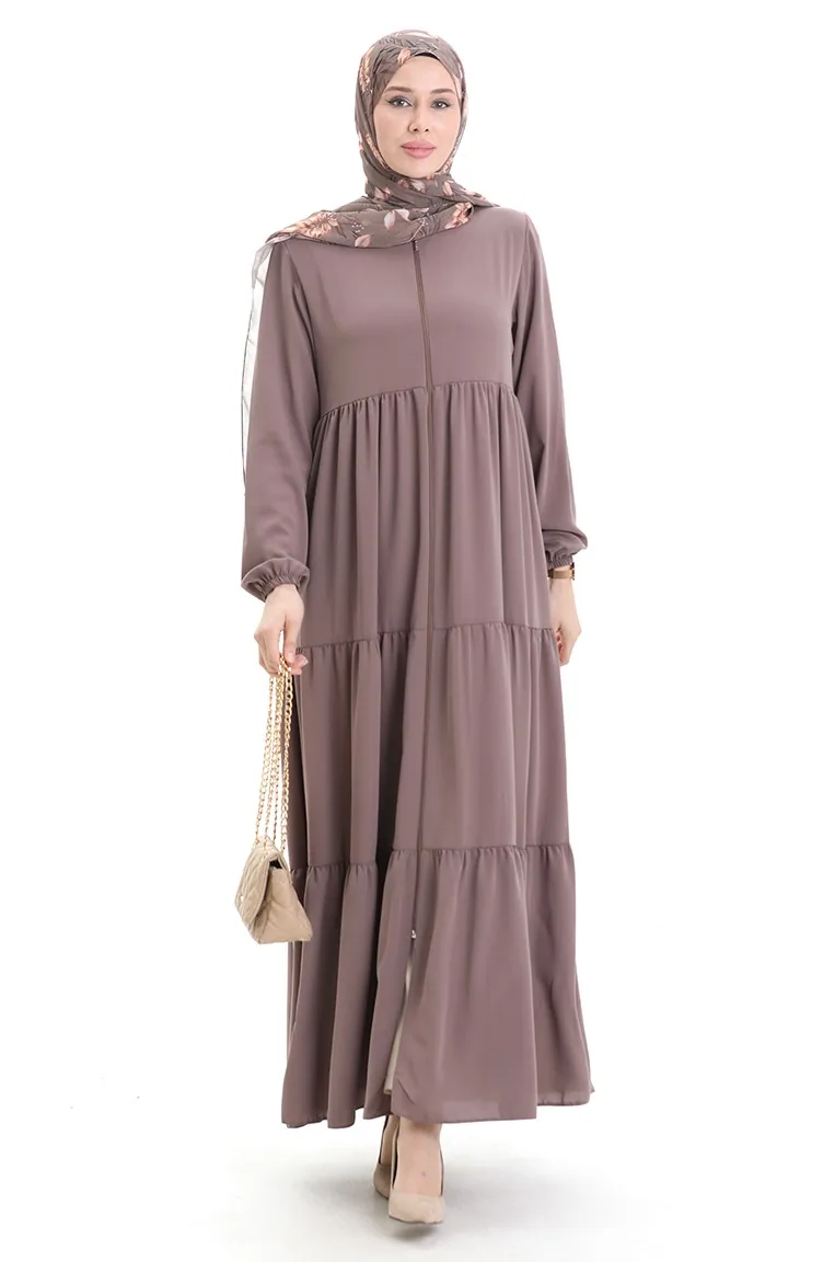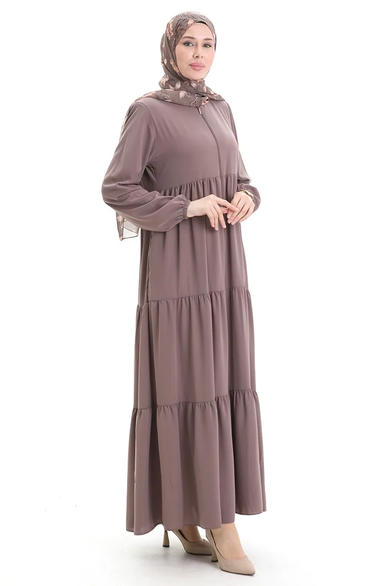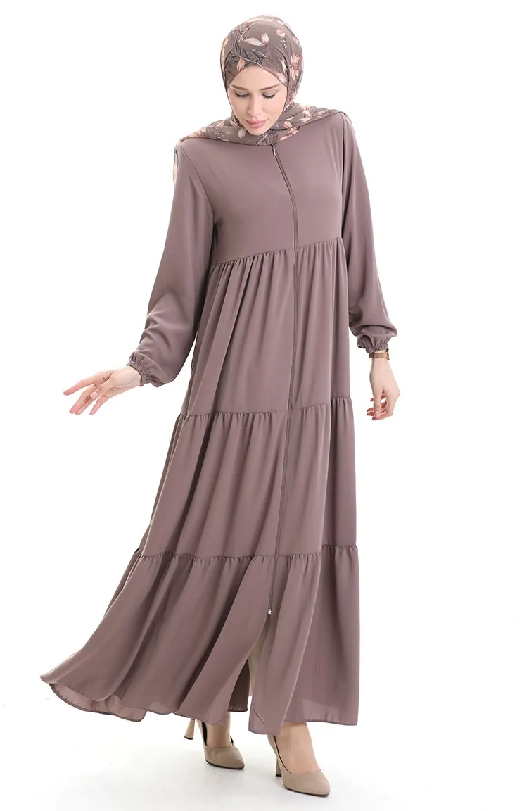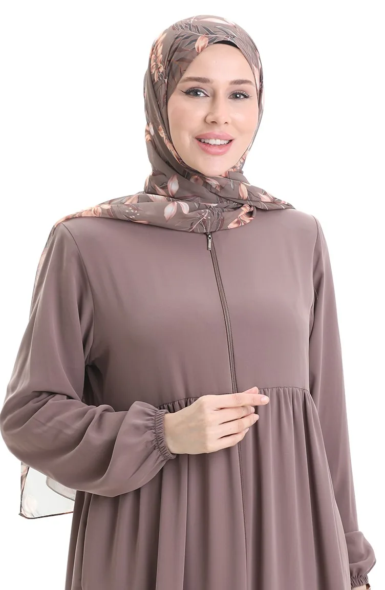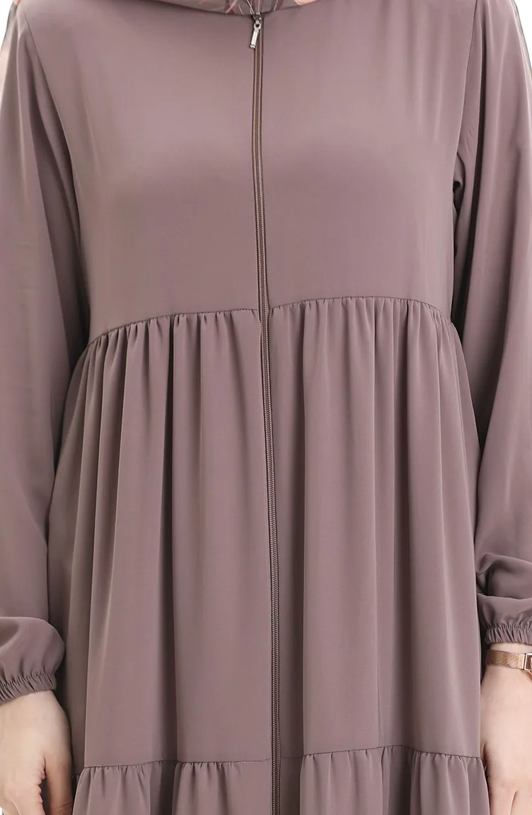 Büyük Beden Kolu Lastikli Fermuarlı Ferace 5082-06 Sütlü kahve