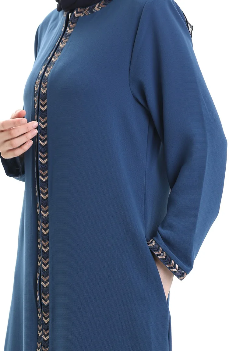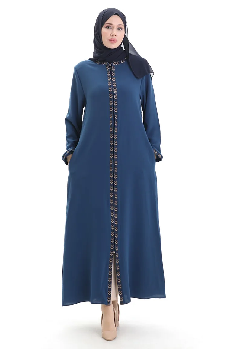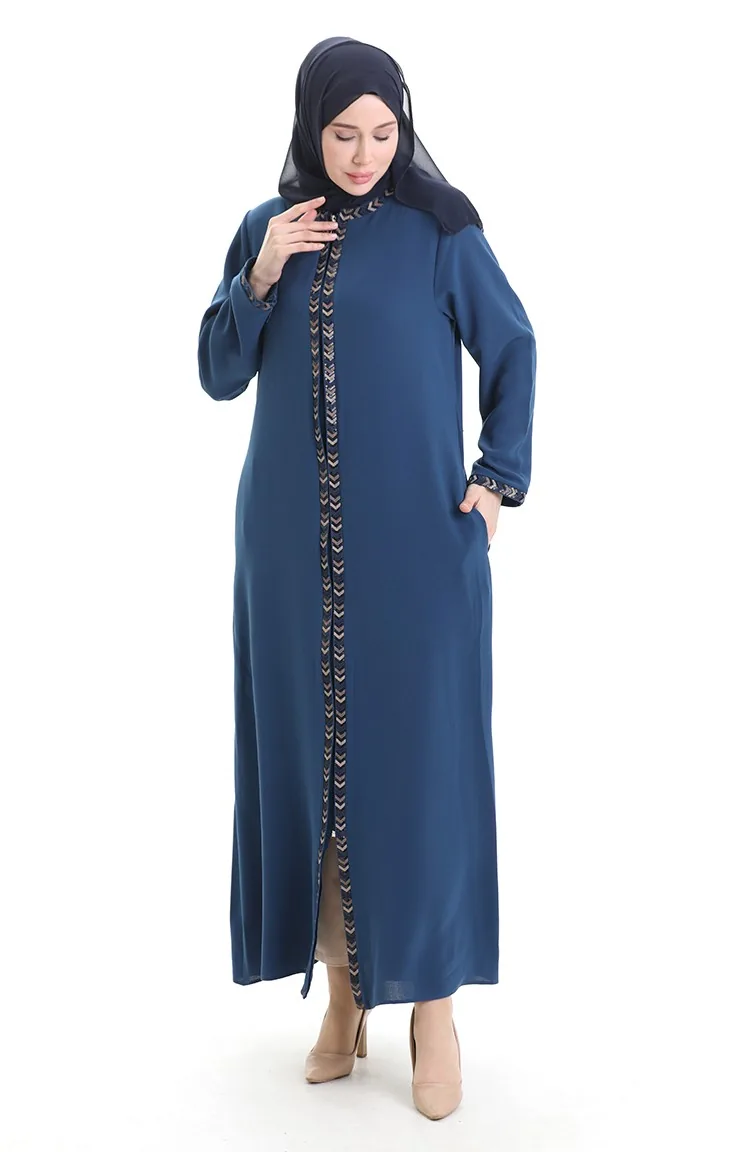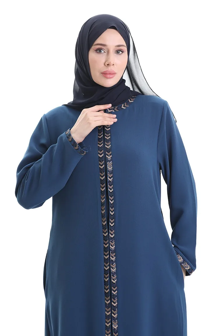 Büyük Beden Petek Kumaş Fermuarlı Ferace 6183-02 İndigo