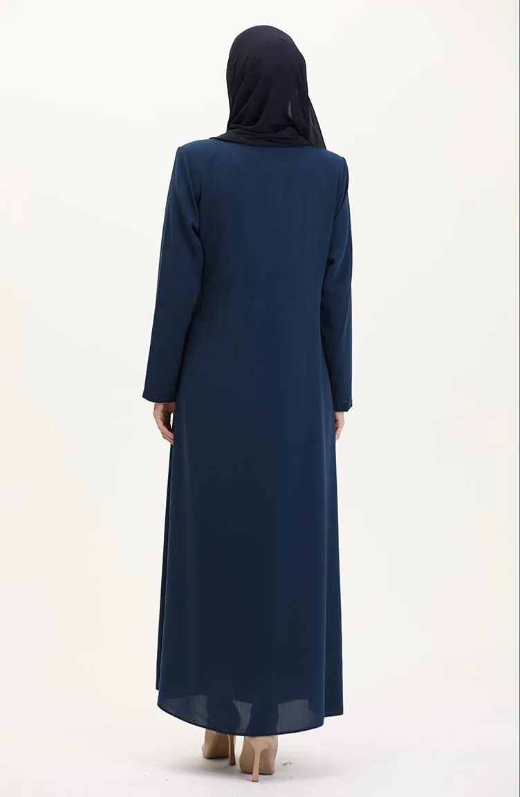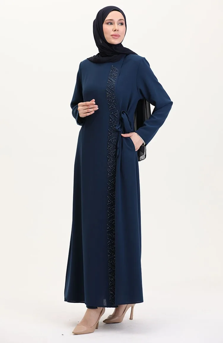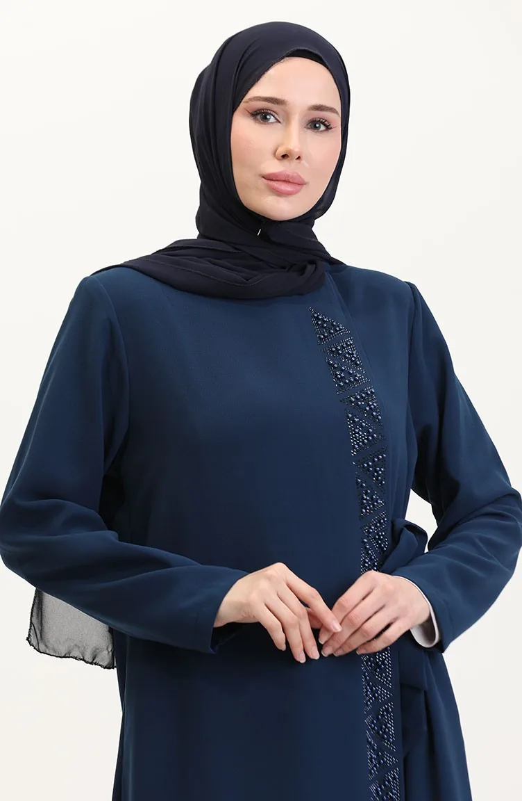 Büyük Beden Yandan Bağlamalı Taşlı Ferace 5075-09 Petrol