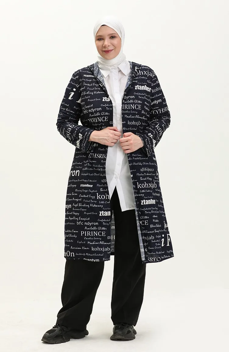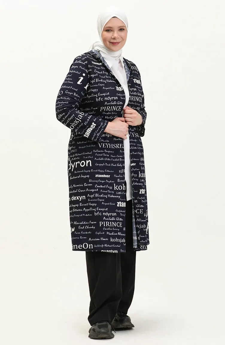 Büyük Beden Kapüşonlu Kap 4707-02 Lacivert
