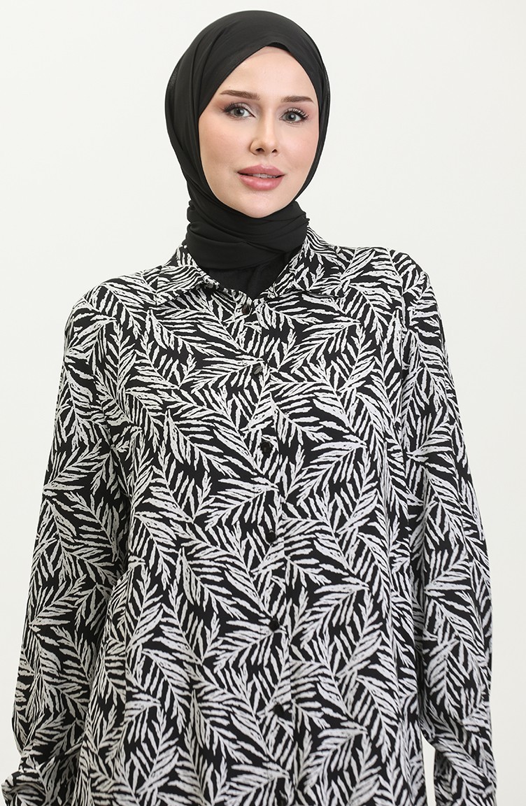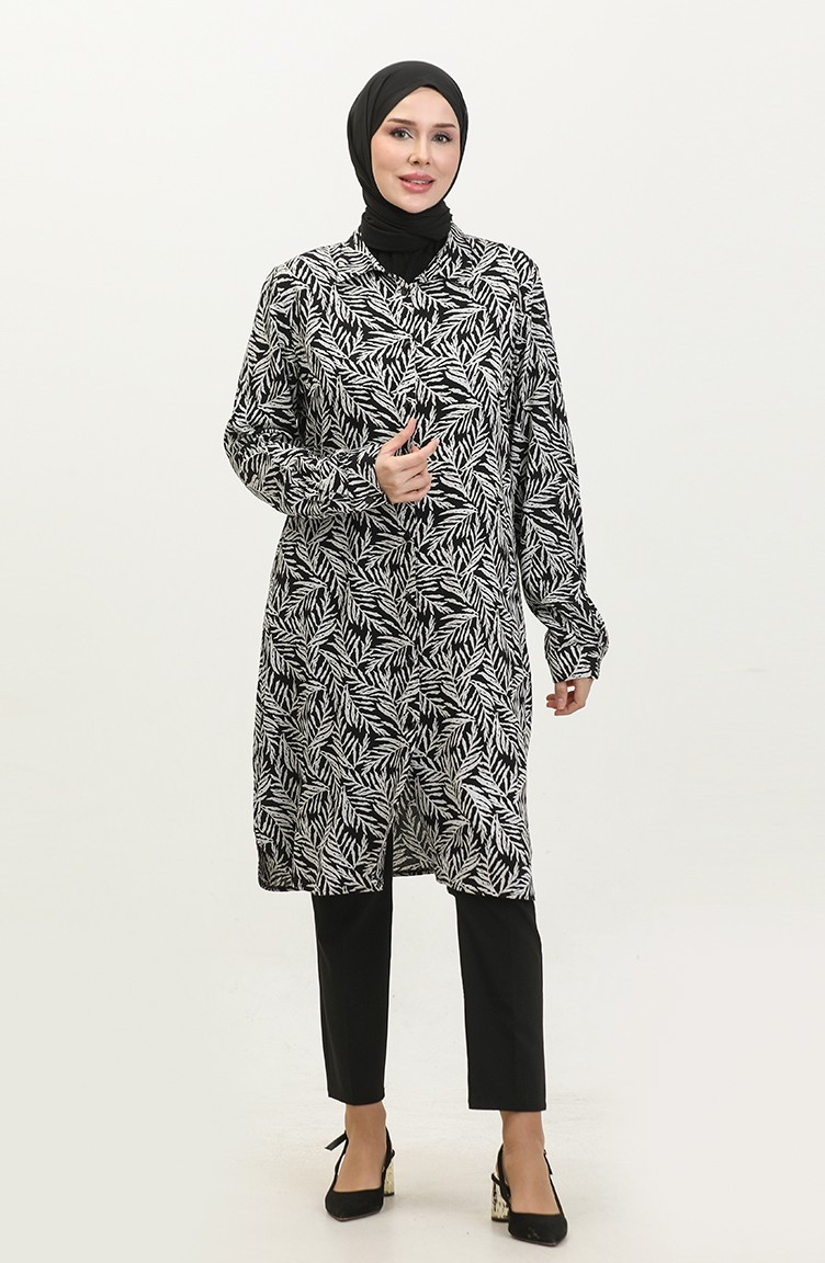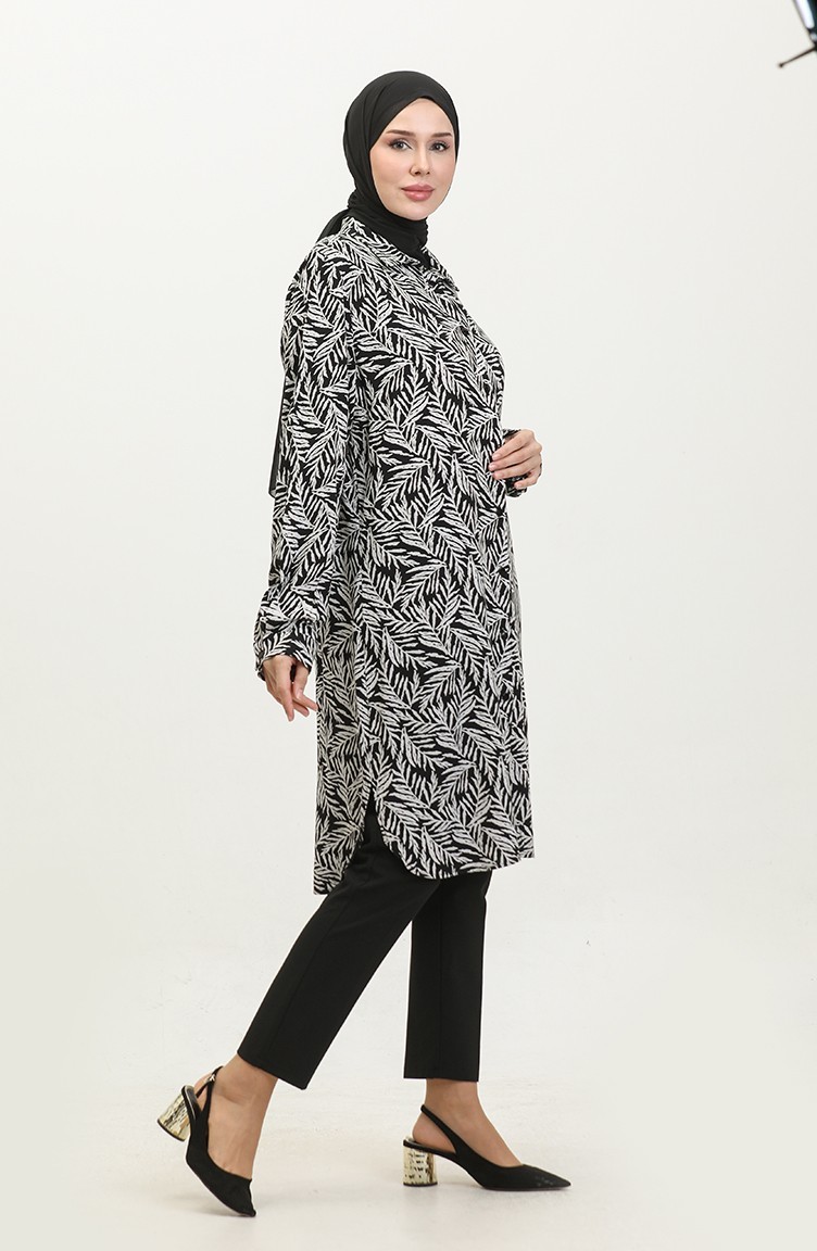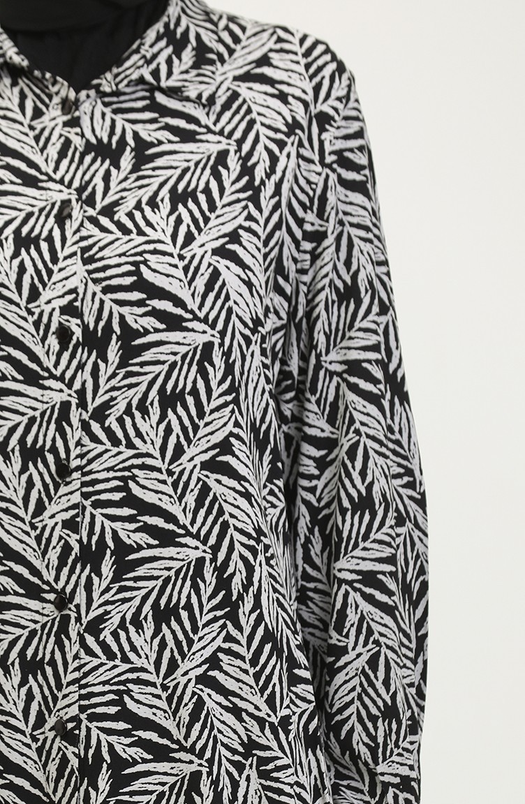 Büyük Beden Desenli Gömlek Tunik 2022-01 Siyah