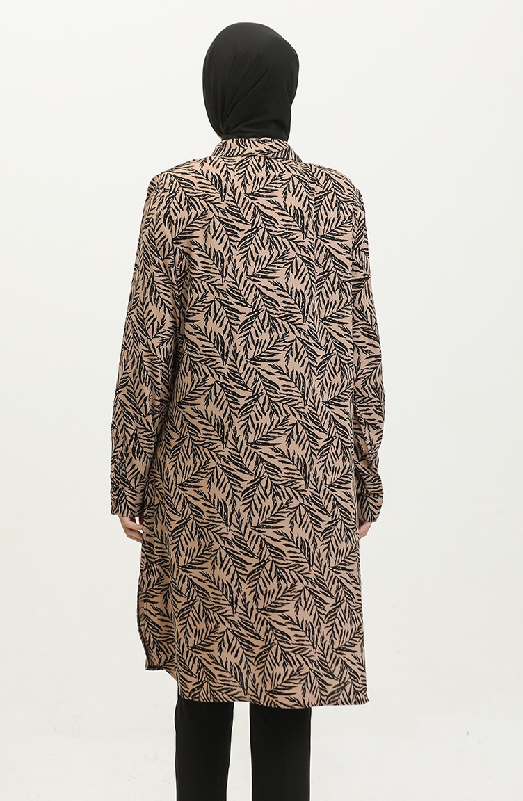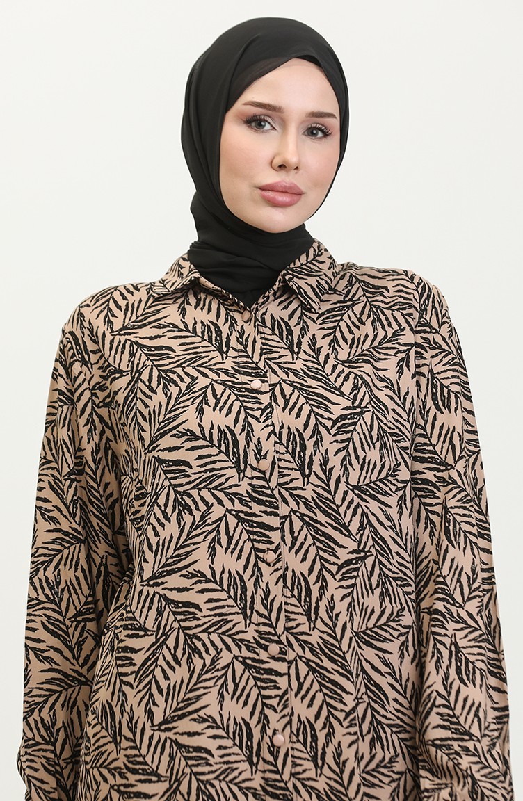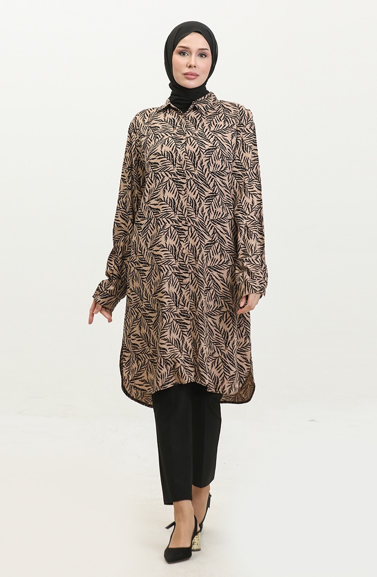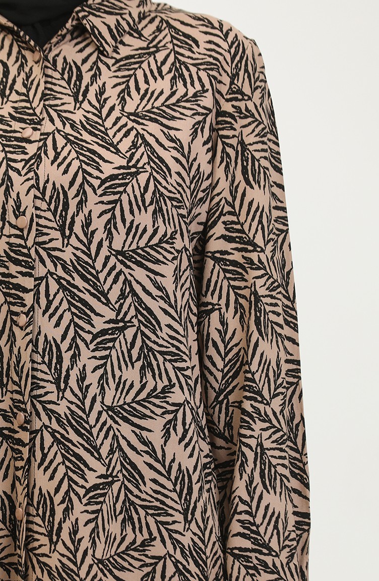 Büyük Beden Desenli Gömlek Tunik 2022-04 Vizon