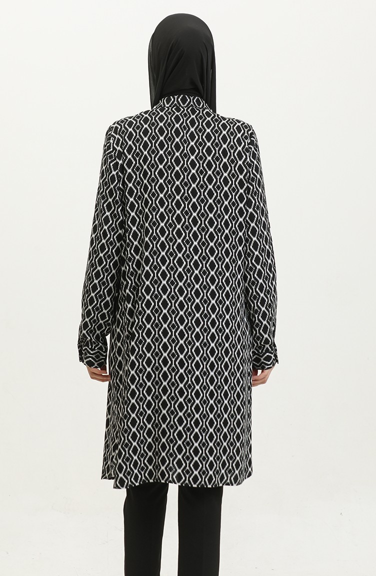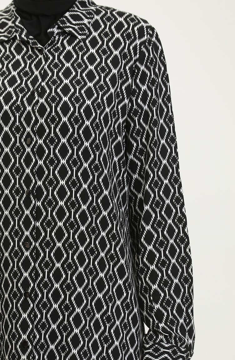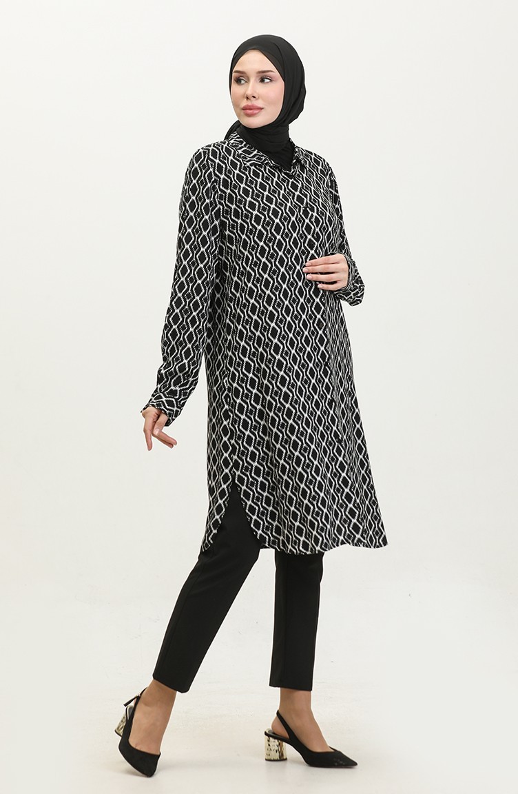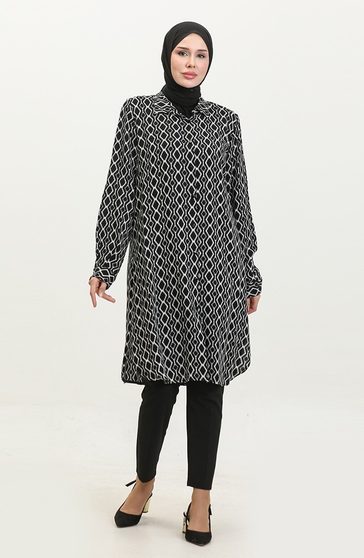 Büyük Beden Desenli Gömlek Tunik 2022A-01 Siyah