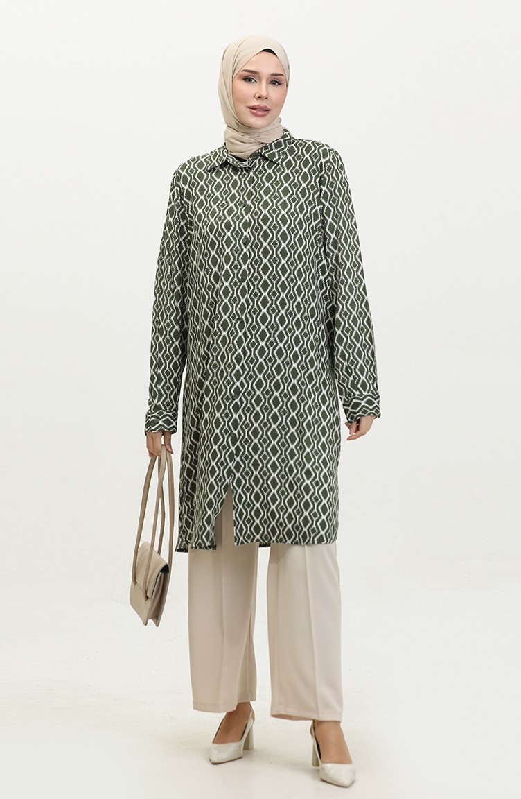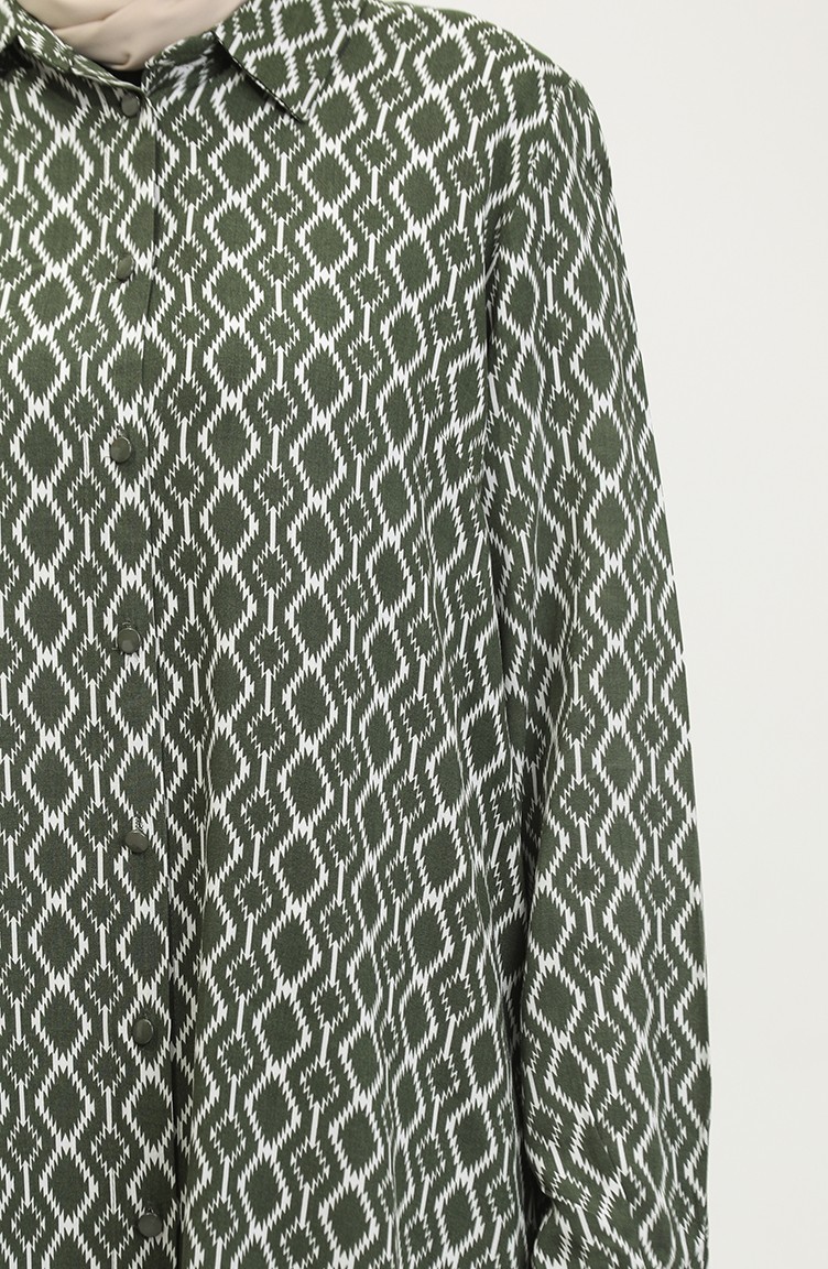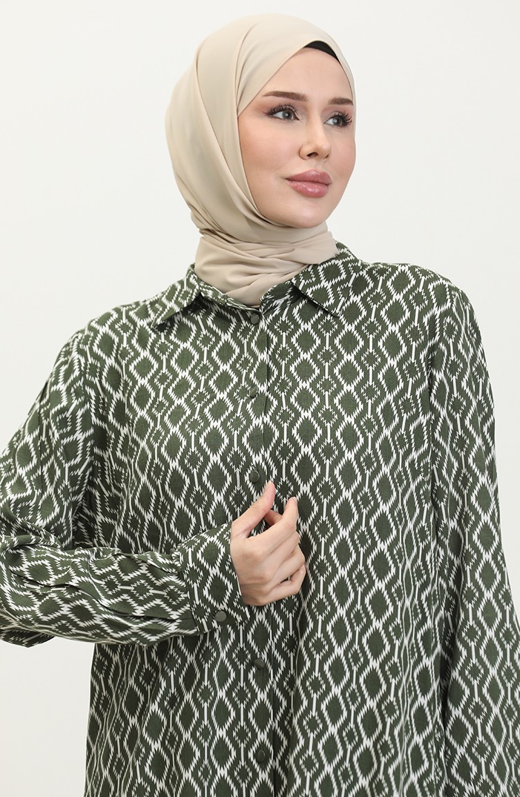 Büyük Beden Desenli Gömlek Tunik 2022A-02 Haki
