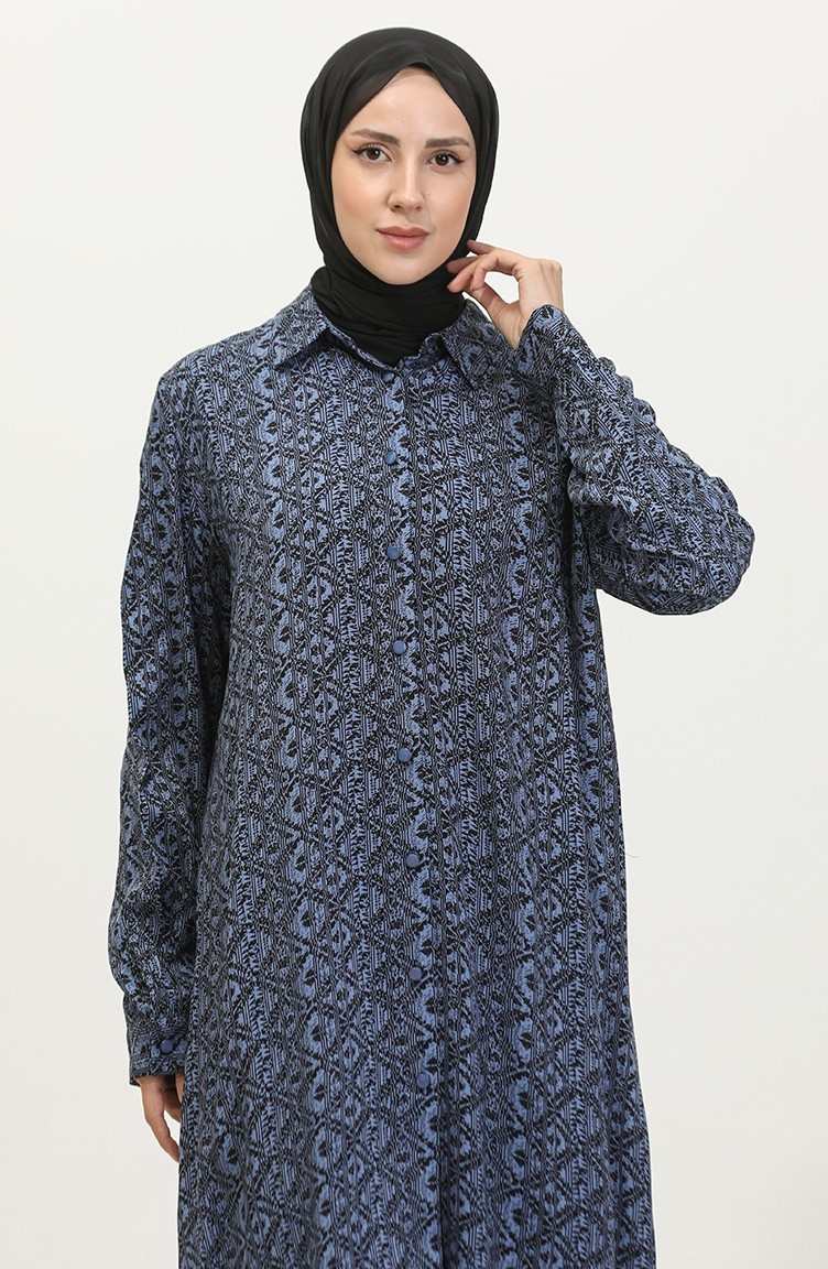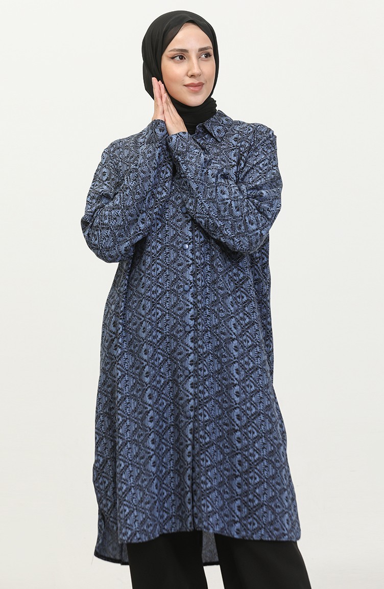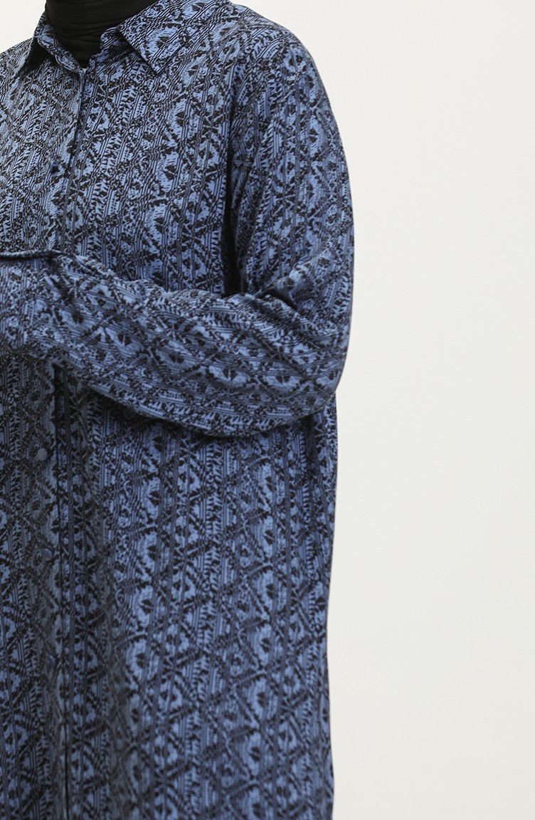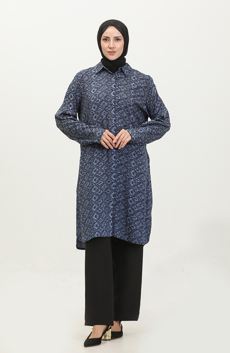 Büyük Beden Desenli Gömlek Tunik 2022C-02 İndigo