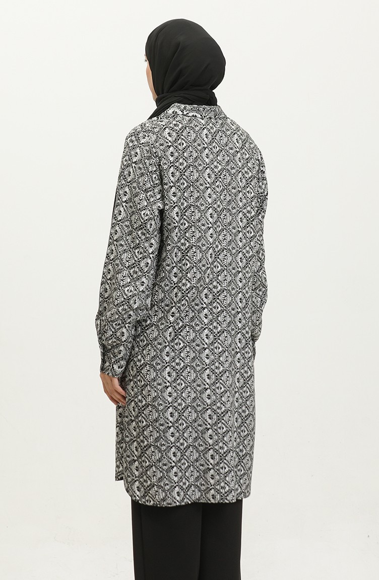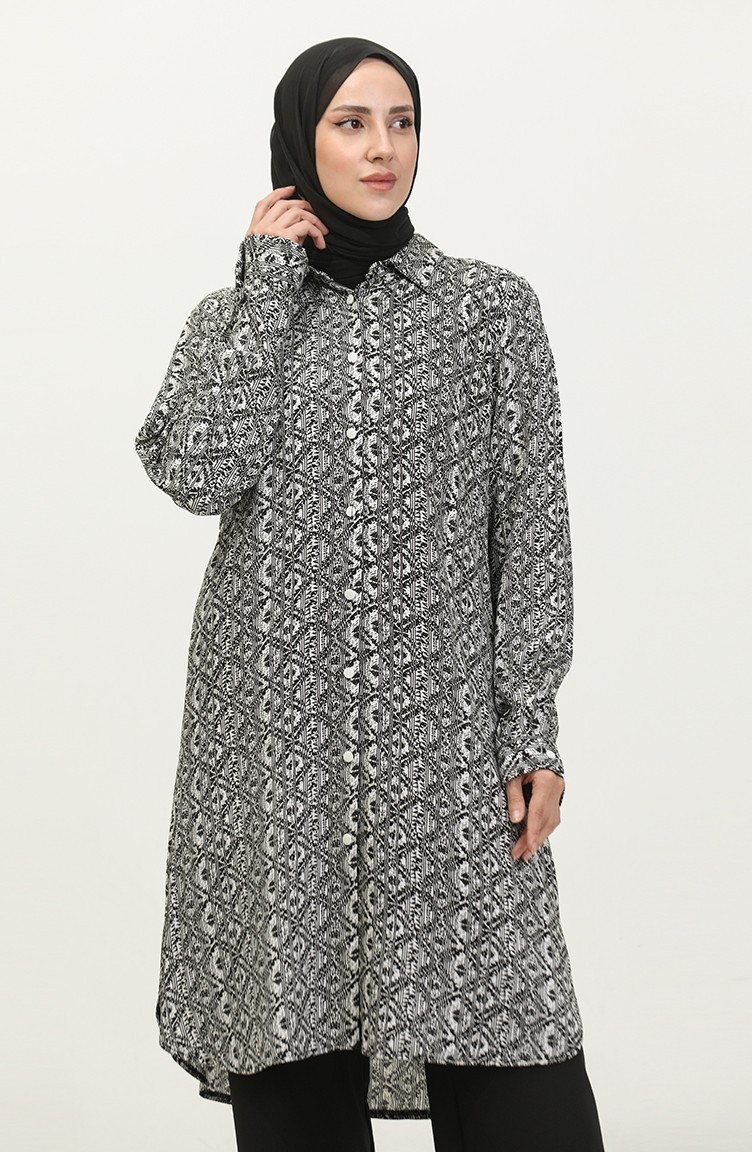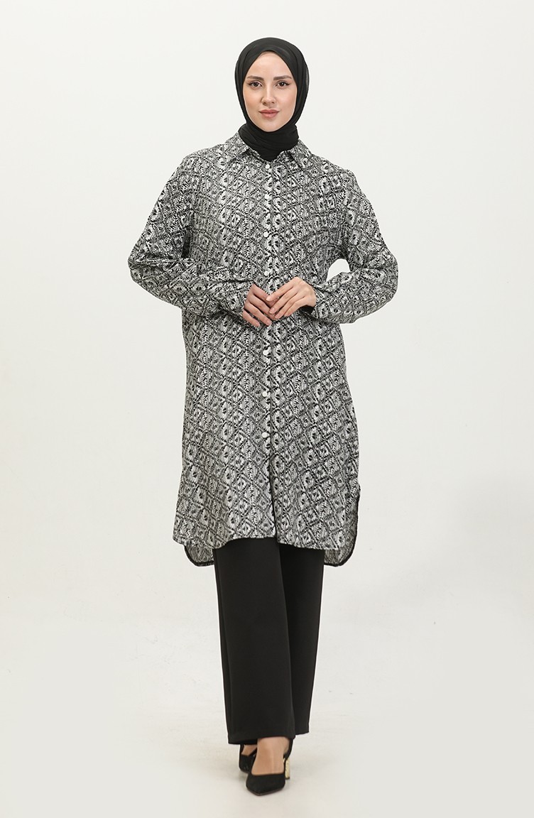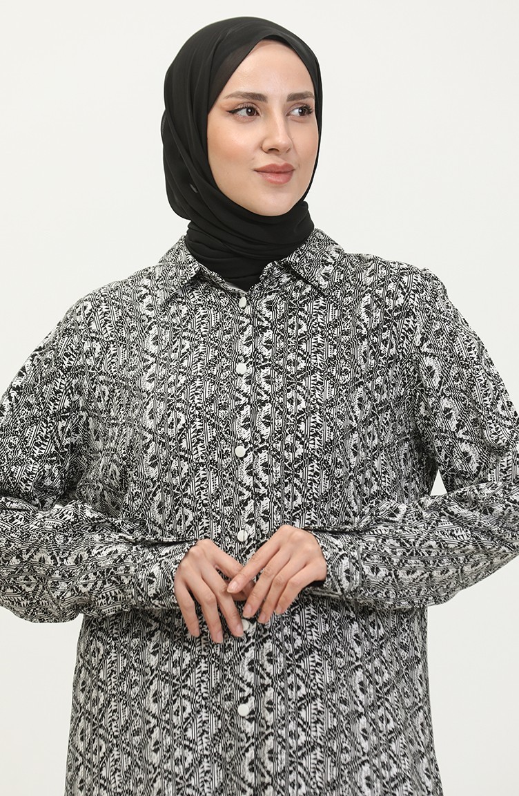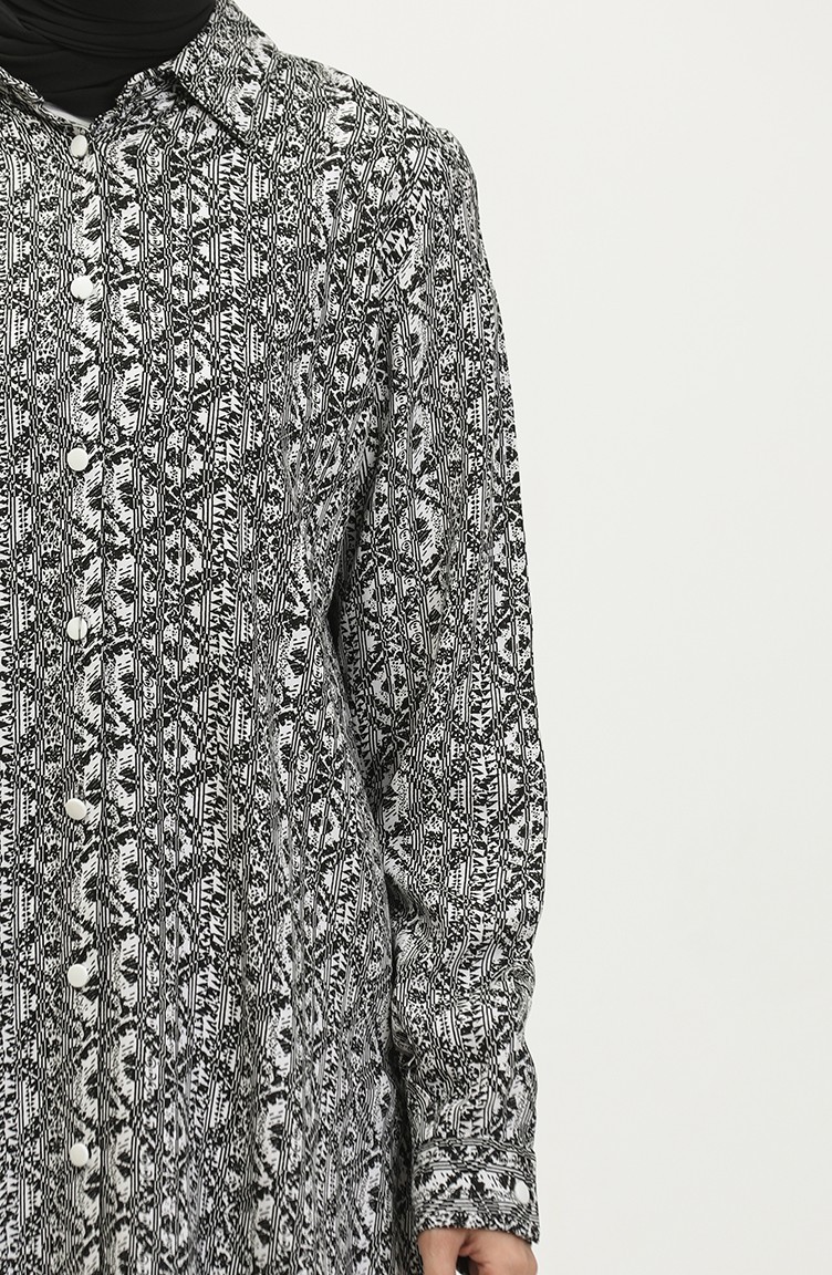 Büyük Beden Desenli Gömlek Tunik 2022C-03 Beyaz