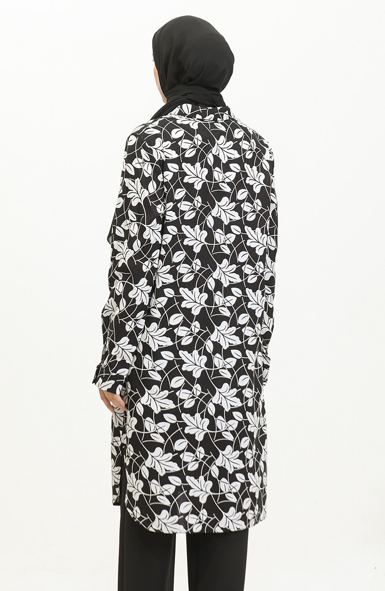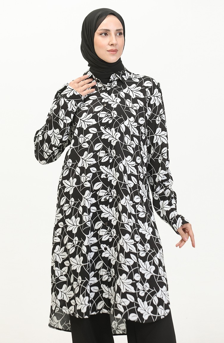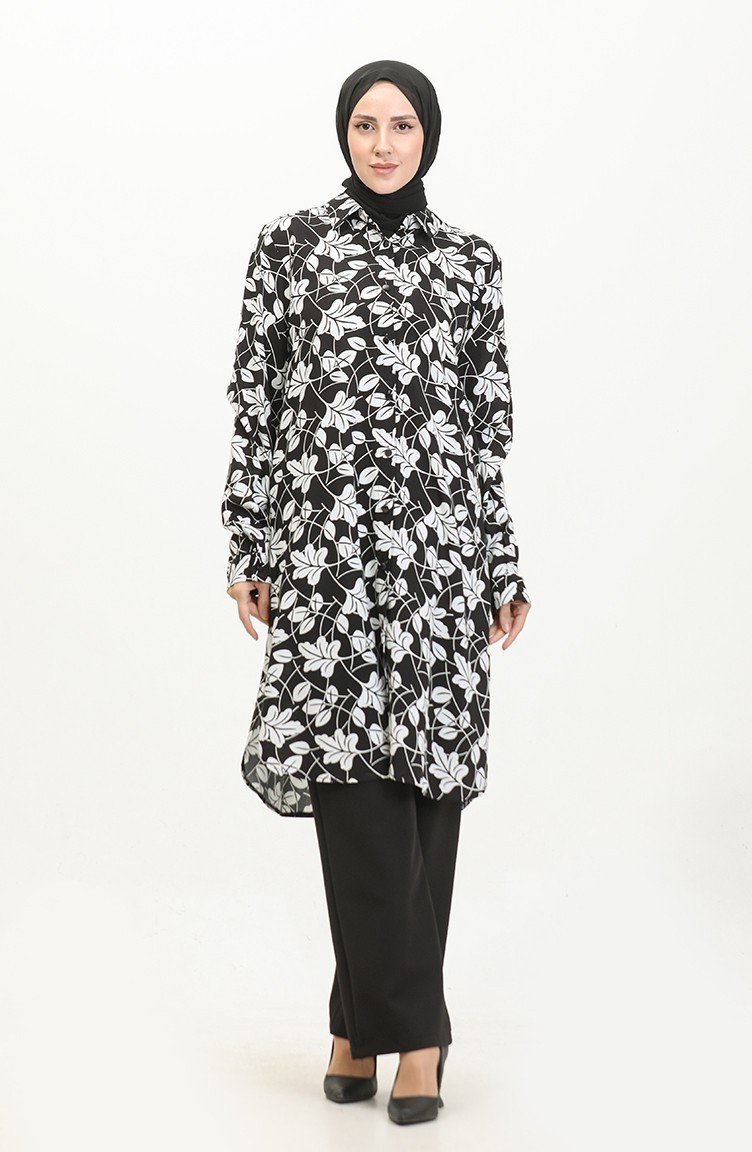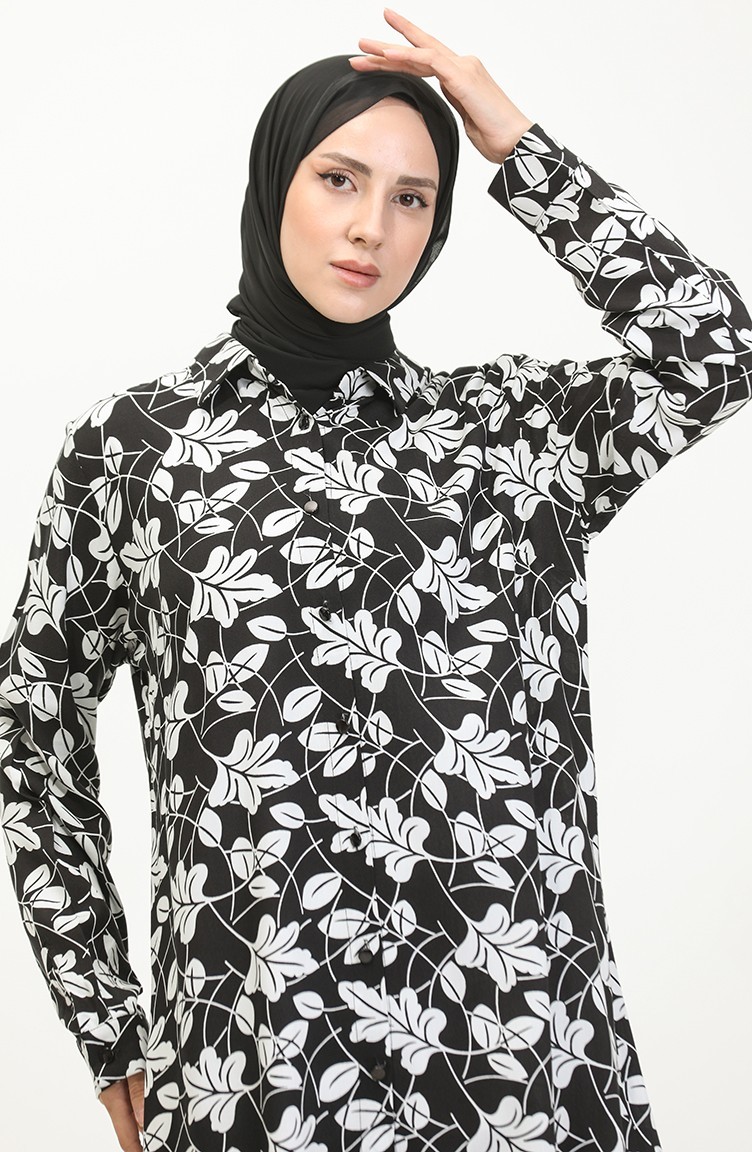 Büyük Beden Desenli Gömlek Tunik 2022D-04 Siyah
