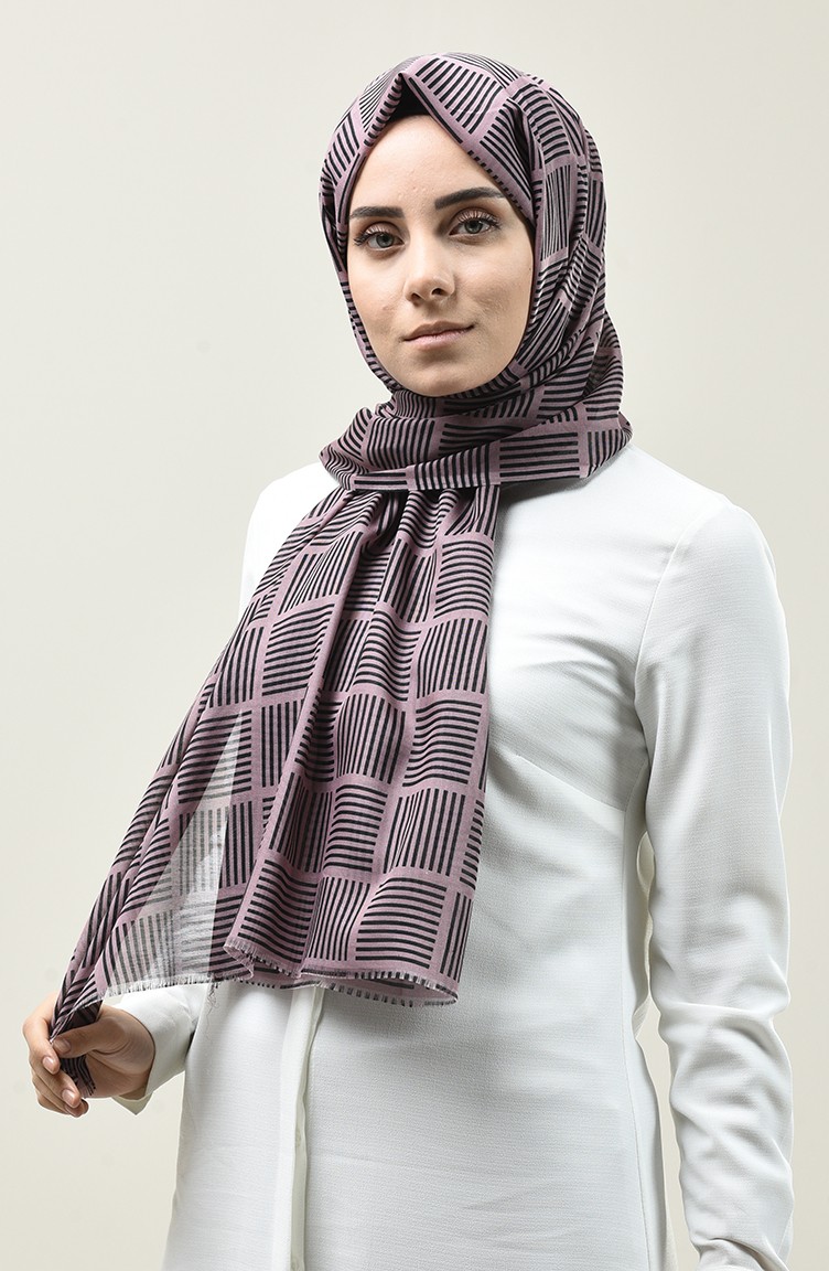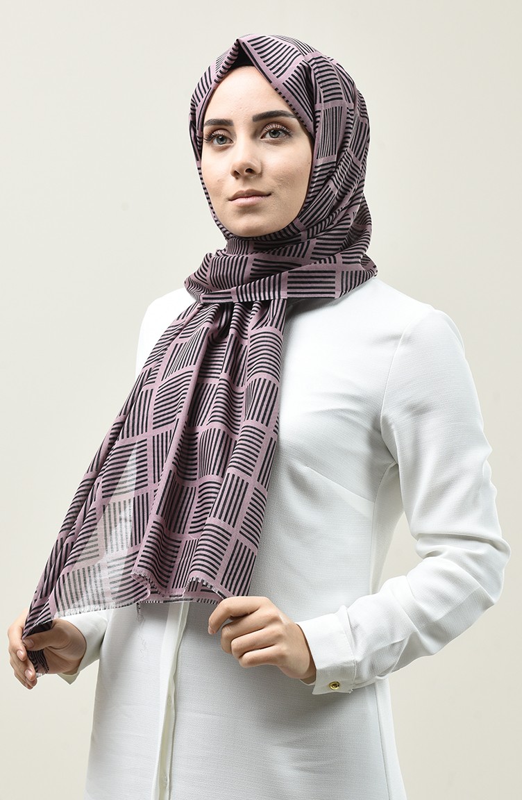 Elmina Desenli Şal 370-105 Açık Gül Kurusu