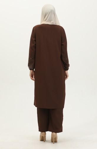 Steinbedrucktes Araboy-Abendkleid Tunika-Hose Doppelanzug 0409-02 Braun 0409-02