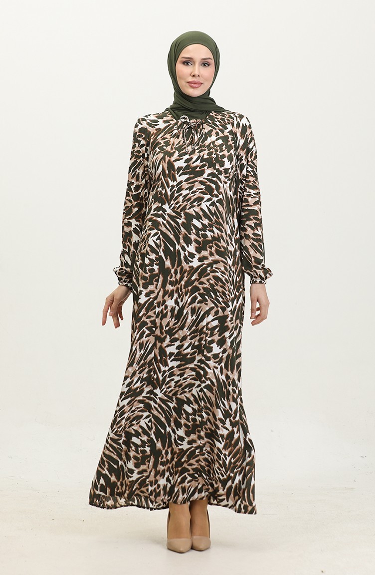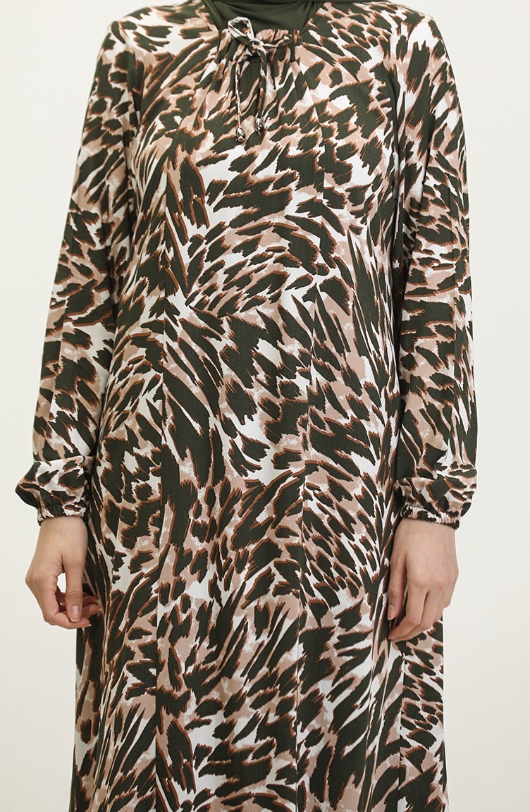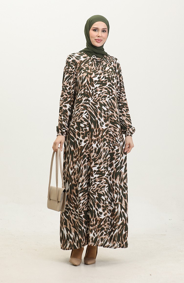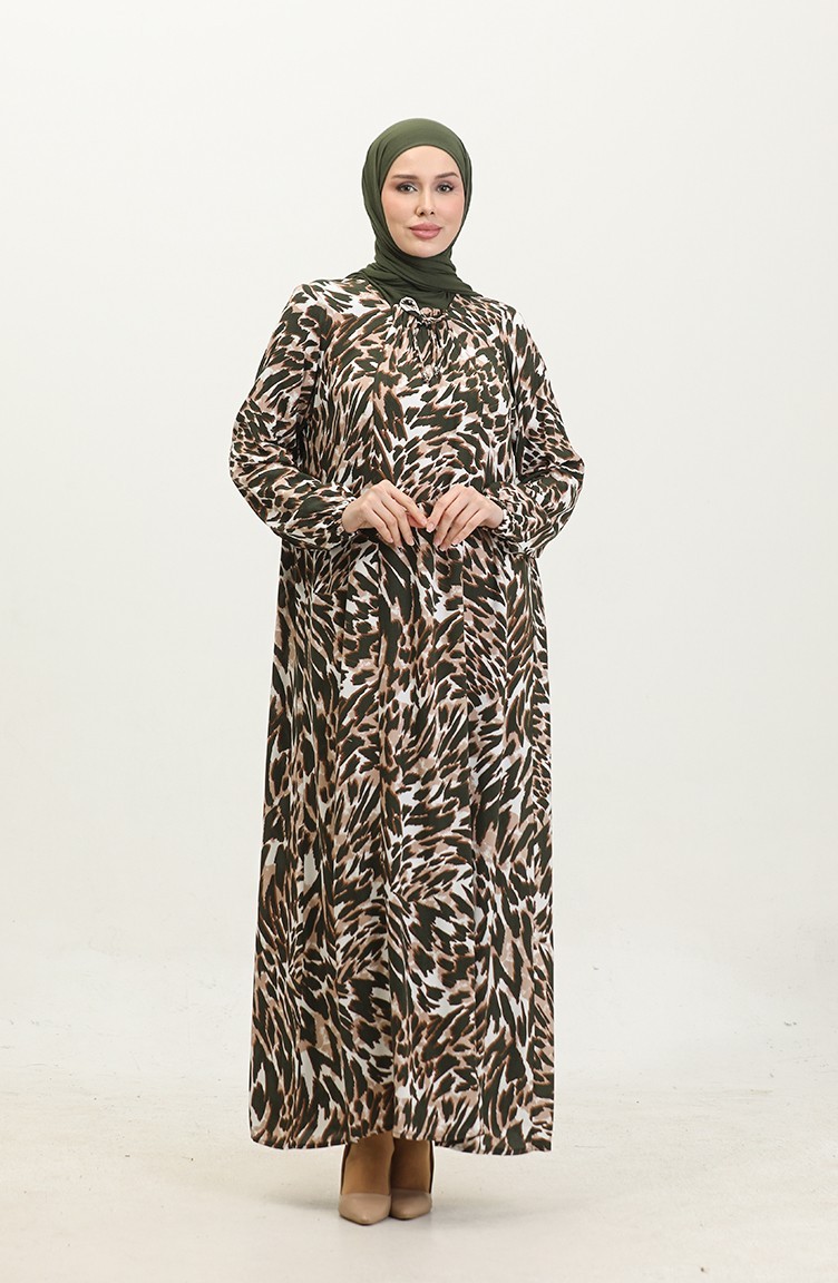 Gemustertes Viskosekleid In Übergröße 44852E-02 Khaki 44852E-02