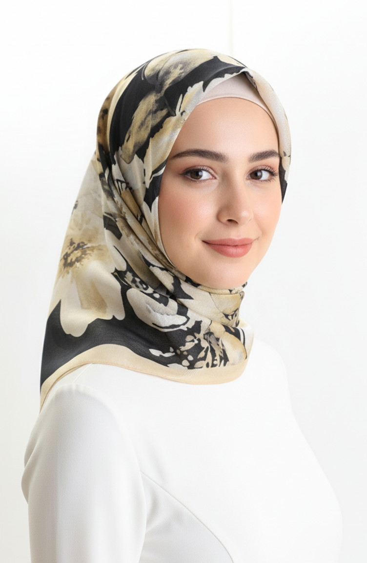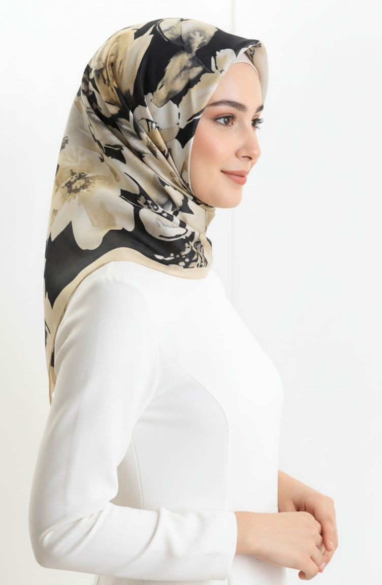 Gemusterter Bernsteinfarbener Schal 70325-09 Schwarz Hellsenf 70325-09