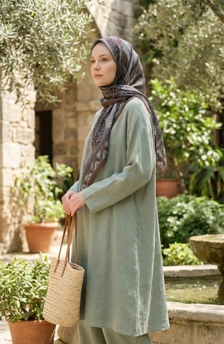 Karaca Baumwollschal Mit Muster 81091-08 Hellbraun Grün 81091-08
