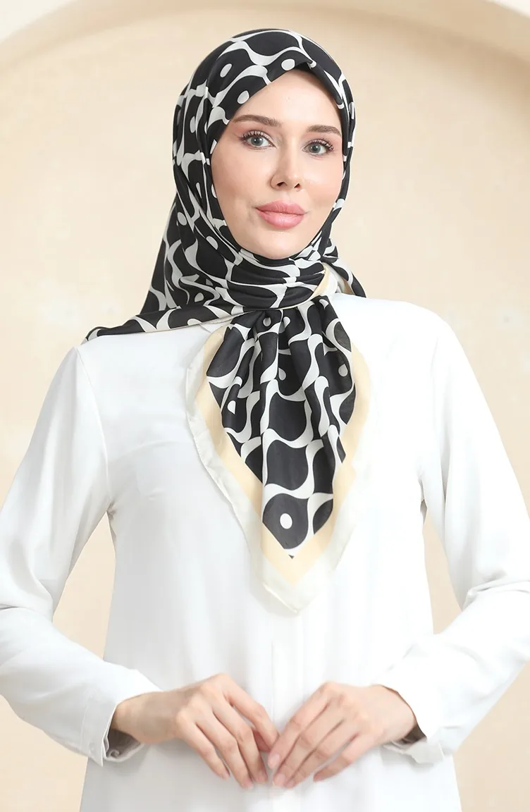 Weicher Baumwollschal 19090-03 Schwarz Beige 19090-03