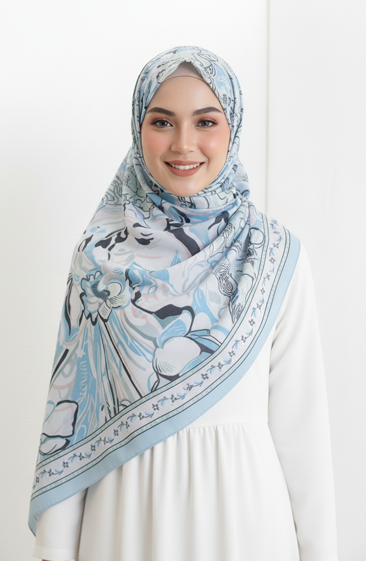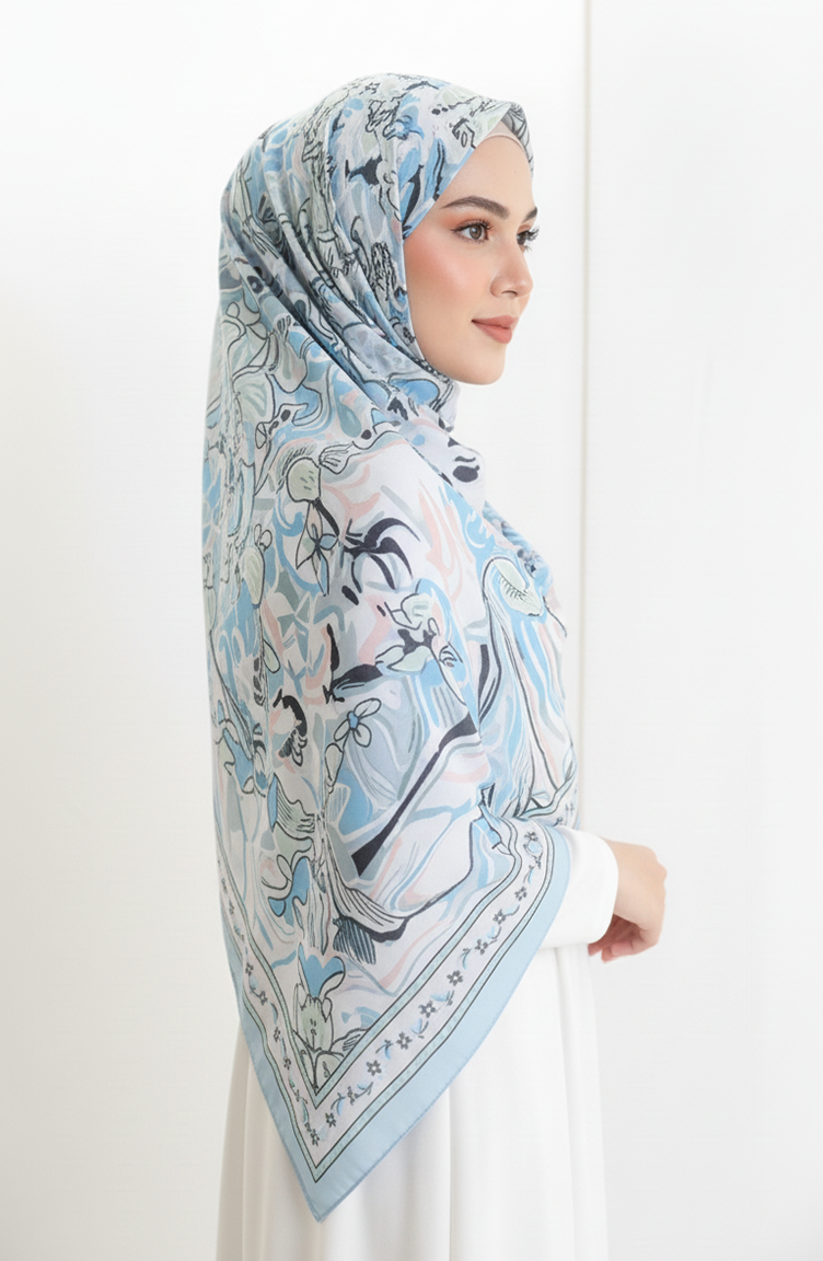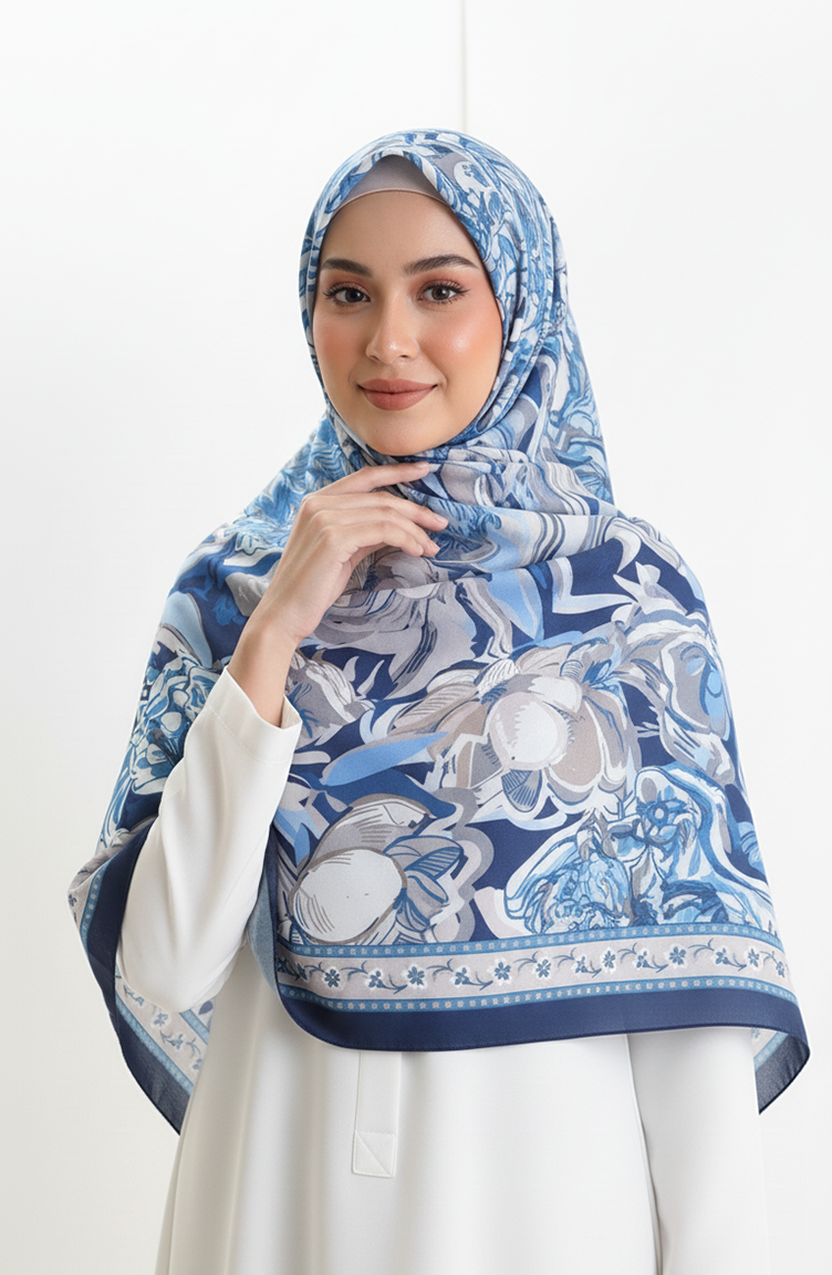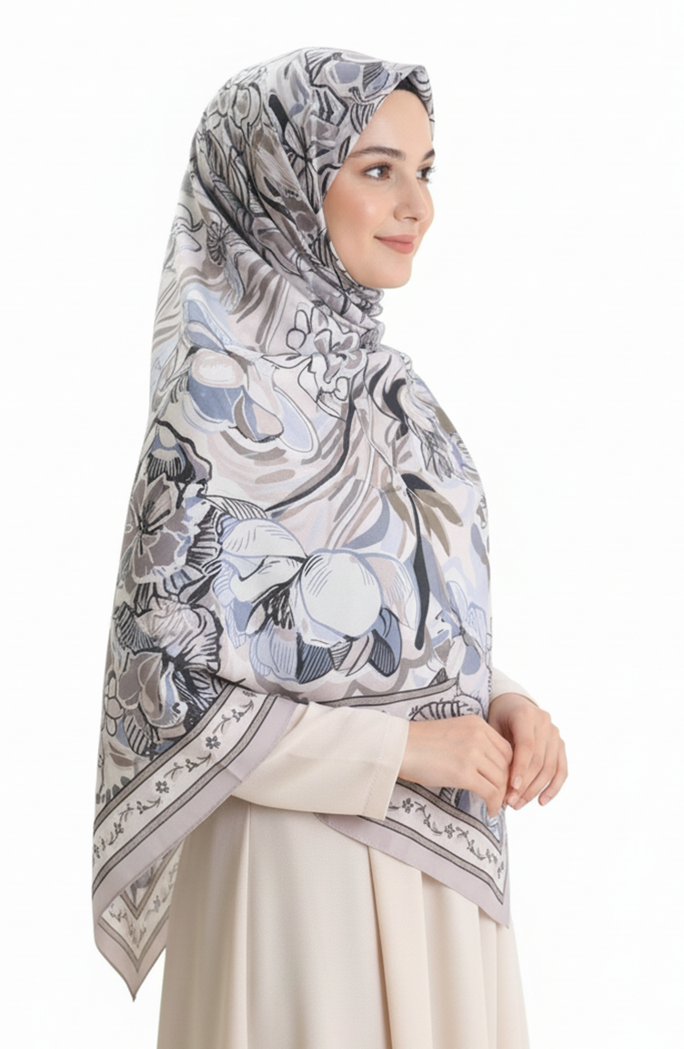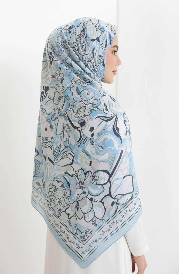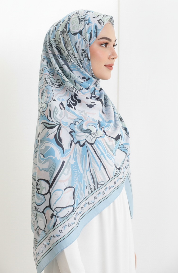 Gemusterter Baumwoll-Kokonschal 70327-02 Blau 70327-02