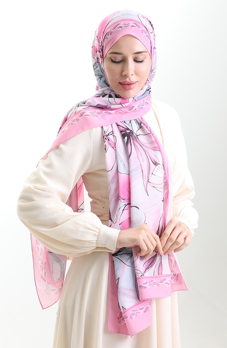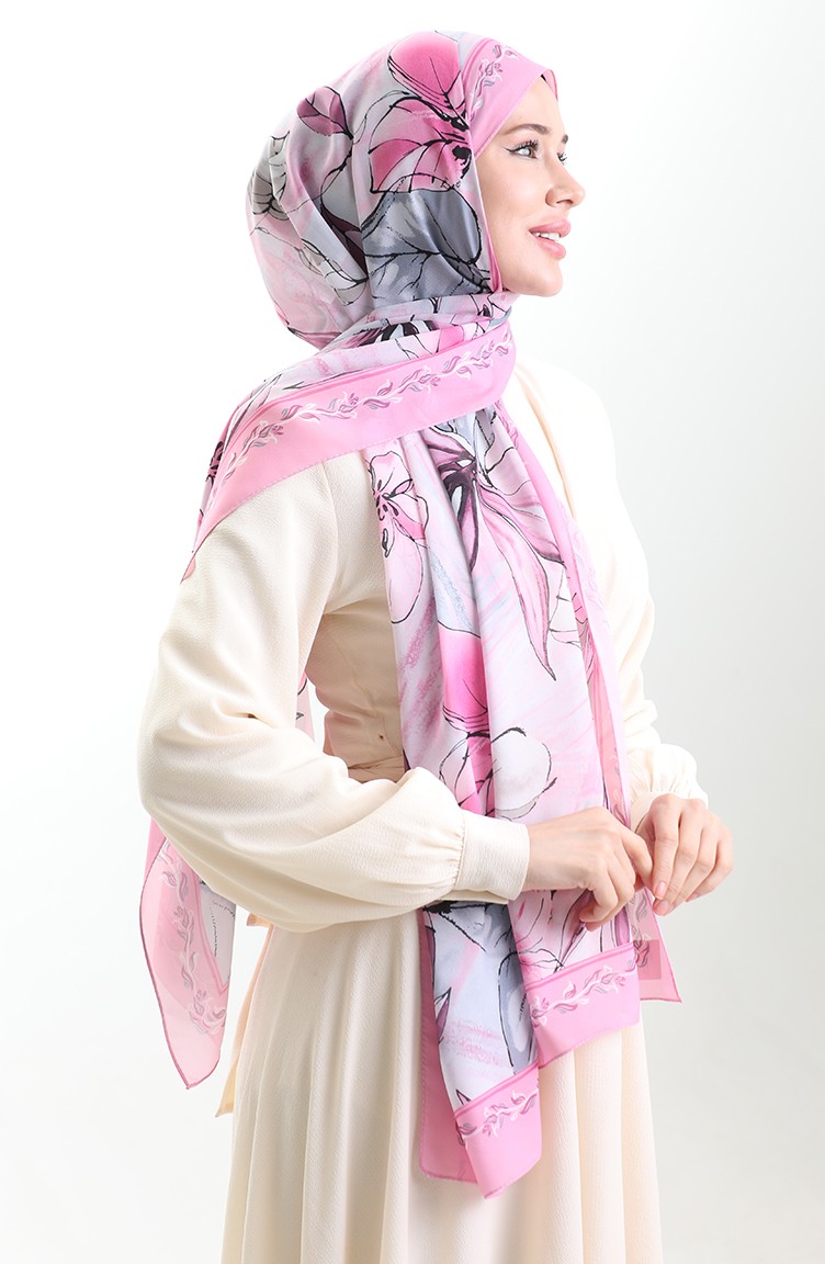 Hanzade Französischer Seidenschal 70330-15 Rosa Grau 70330-15