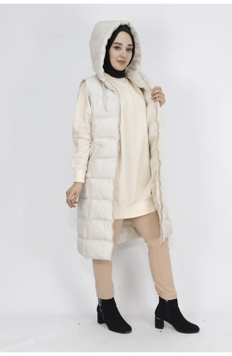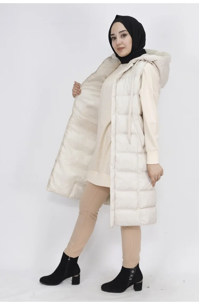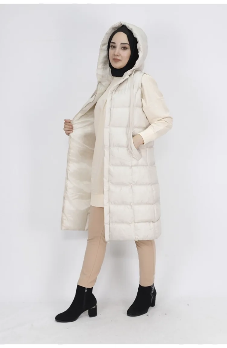 jessica kumaş, kapüşonlu yaka, sıfır kol, astarlı, cepli, kapüşon sabit, mankenin giydiği beden:38, kumaş değerleri;%100polyester, ürün ölçüleri;göğüs:44,bel:46,basen:50,boy:100cm, mankenin ölçüleri;boy:168cm,göğüs:85,bel:65,basen:90,kilo:55
