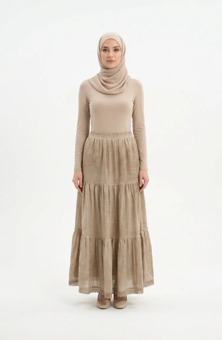 Es hat eine hellbeige Färbung. Şile Bezi. Es ist eine klare Sicht. Es ist für vier Jahreszeiten geeignet. Die Länge wird gemäß den Standardgrößen angepasst.