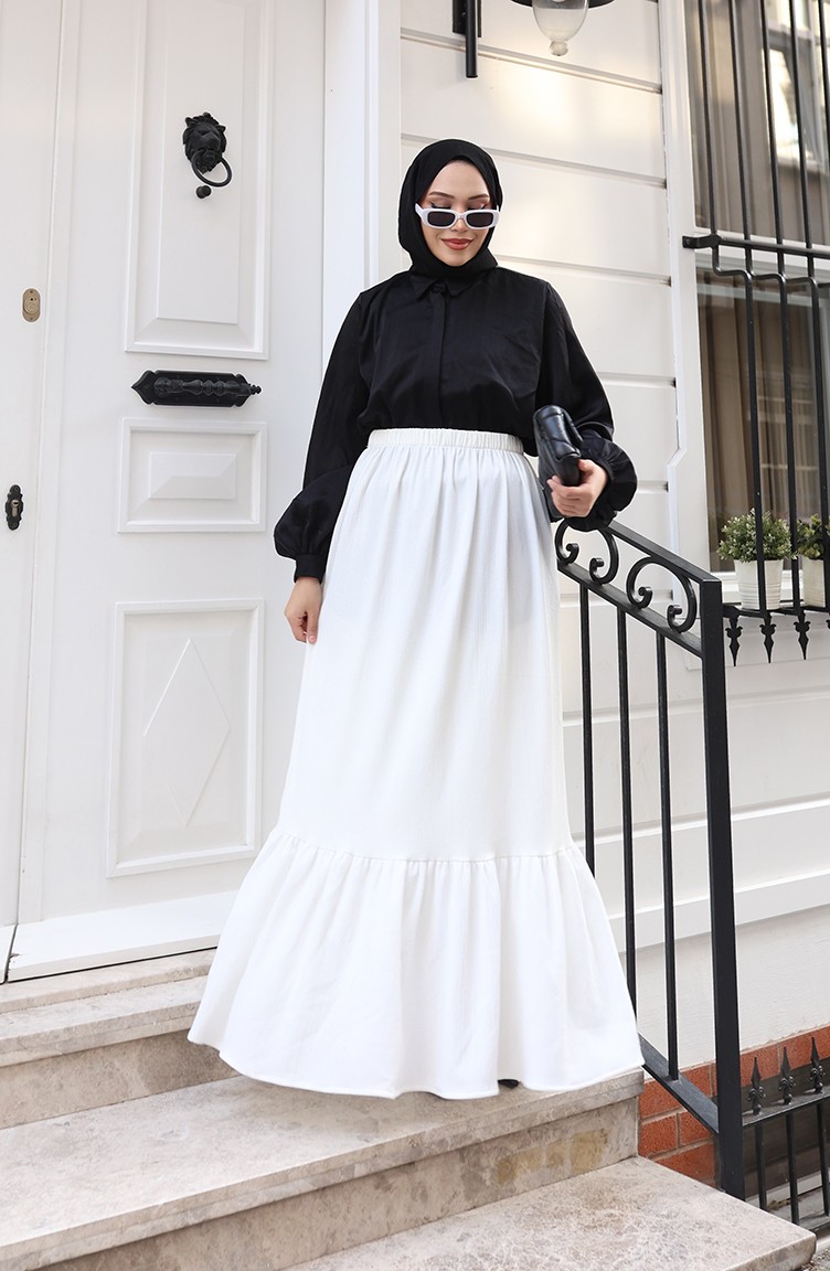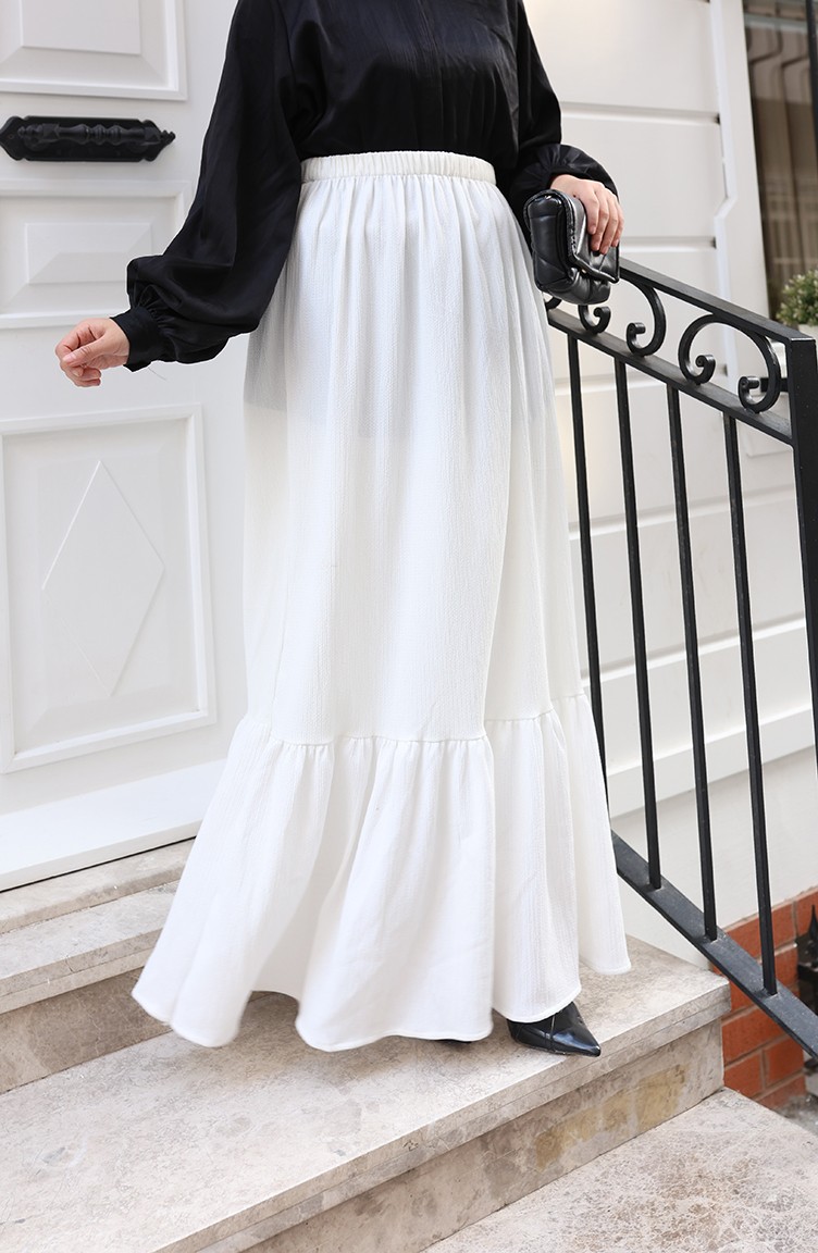 Rock Mit Lockerer Passform Und Elastischem Bund Farbe Ecru Modell 0227C-02 0227C-02